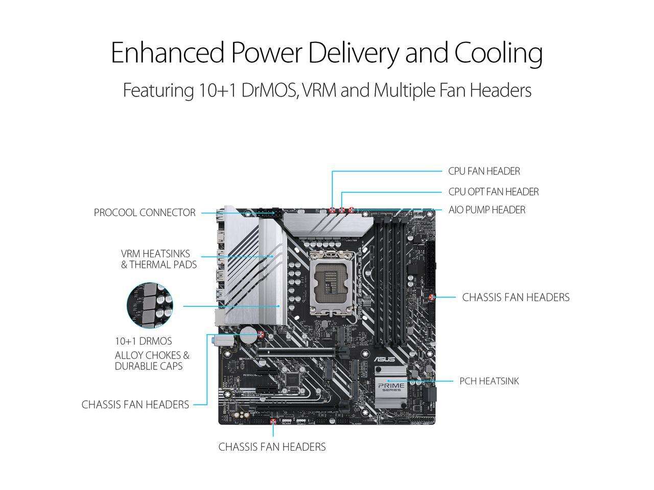 ASUS Prime series motherboards are expertly engineered to unleash the full potential of 12th Generation Intel? processors. Boasting a robust power design, comprehensive cooling solutions and intelligent tuning options, Prime Z690M-Plus D4 provides users and PC DIY builders a range of performance tuning options via intuitive software and firmware features.