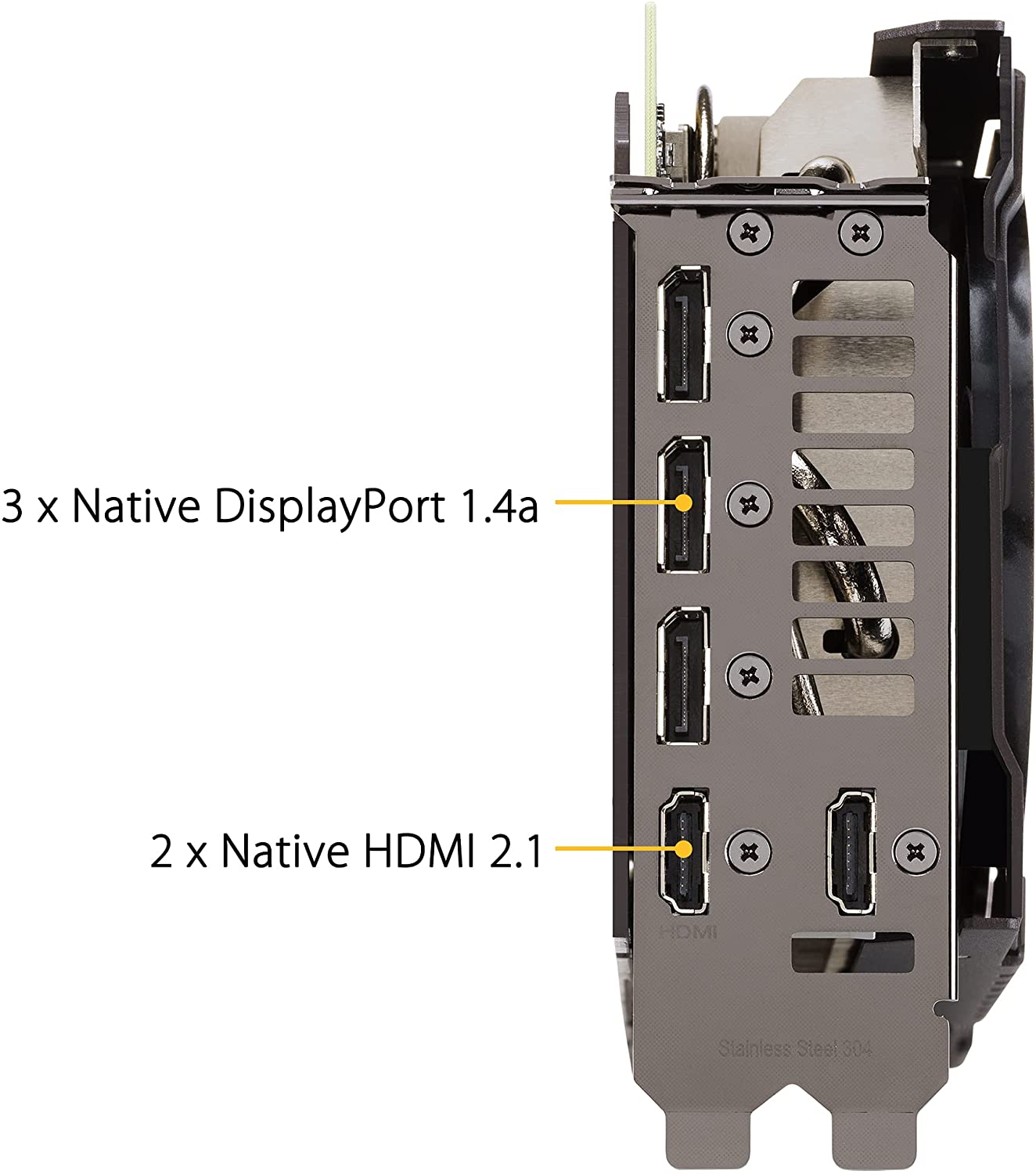 | Ports | Yes x 2 (Native HDMI 2.1) Yes x 3 (Native DisplayPort 1.4a) 4 x Maximum Display Support |
