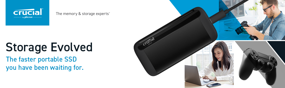 Plug the Crucial X8 Portable SSD into your PS4 or Xbox One and expand your gaming world?. With up to 2TB of storage, you’ll spend less time deleting files and more time in the game.