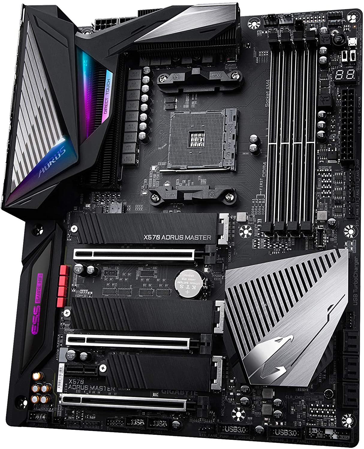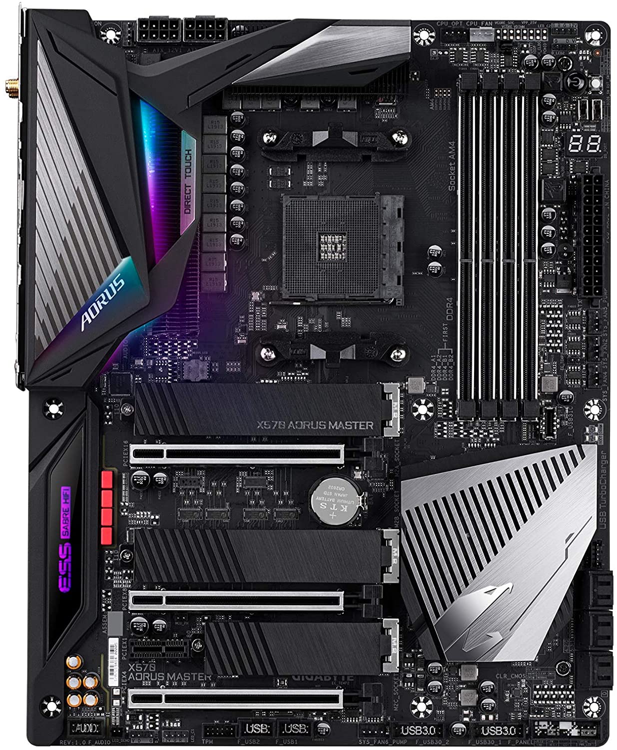 AMD X570 AORUS Motherboard with Direct 14 Phase Infineon Digital VRM, Fins-Array Heatsink & Direct Touch Heatpipe, Triple PCIe 4.0 M.2 with Thermal Guards, Intel? WiFi 6 802.11ax, ESS SABRE HiFi 9118, 2.5GbE+1GbE LAN, USB Type-C, RGB Fusion 2.0
