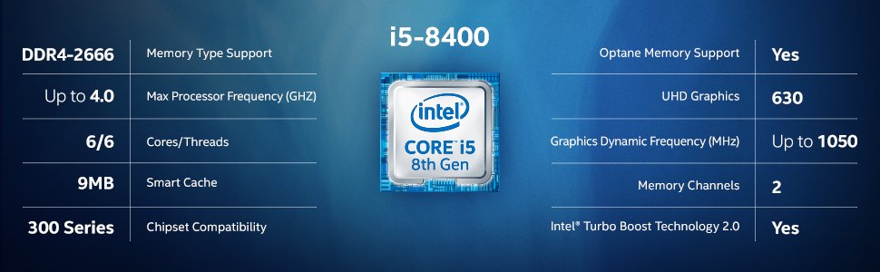 The 8th Gen? Intel??Core processor family enable superior experiences, whether you are looking for a smooth gaming experience, 4K video viewing, or just for doing general work on your computer more efficiently. If form factor is your priority, the 8th Gen is designed for desktop PCs from high-performance gaming towers, to slick and stylish all-in-ones, to compact living room minis.