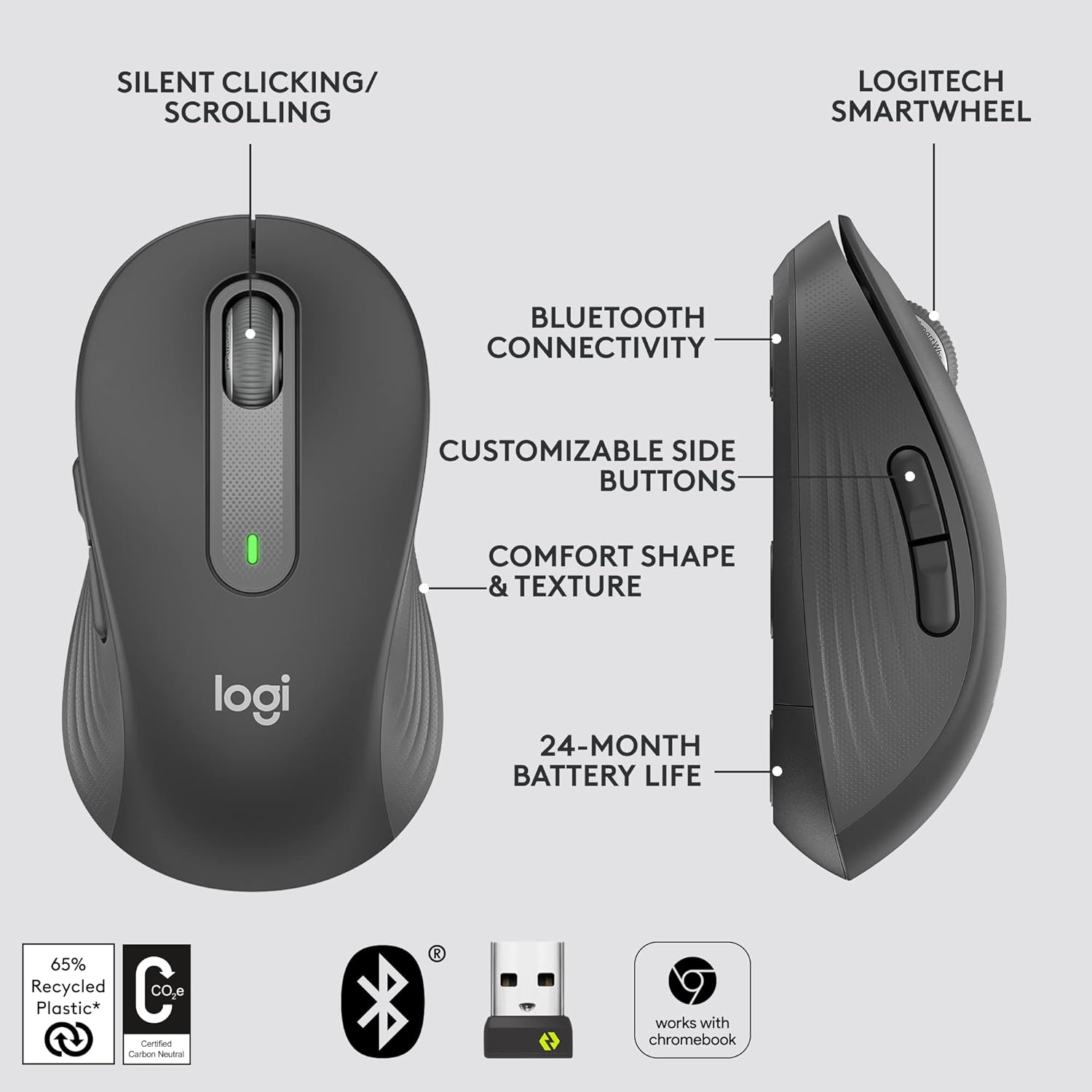 Logitech Signature M650 Full Size Wireless Mouse – for Small to Medium Sized Hands, 2-Year Battery, Silent Clicks, Customisable Side Buttons, Bluetooth, for PC/Mac/Multi-Device/Chromebook (Graphite)