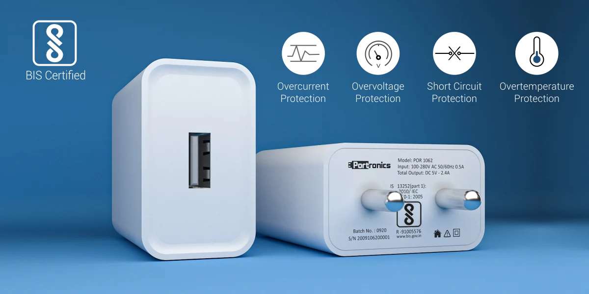 USB Charger: The Adapto 62 is essentially a 2.4 A wall Fast charger, that lets you charge all your USB devices with a single adaptor, to avoid the hassle of carrying multiple chargers. The adaptor also comes with a 1M micro USB charging cable, compatible with most devices as well.
