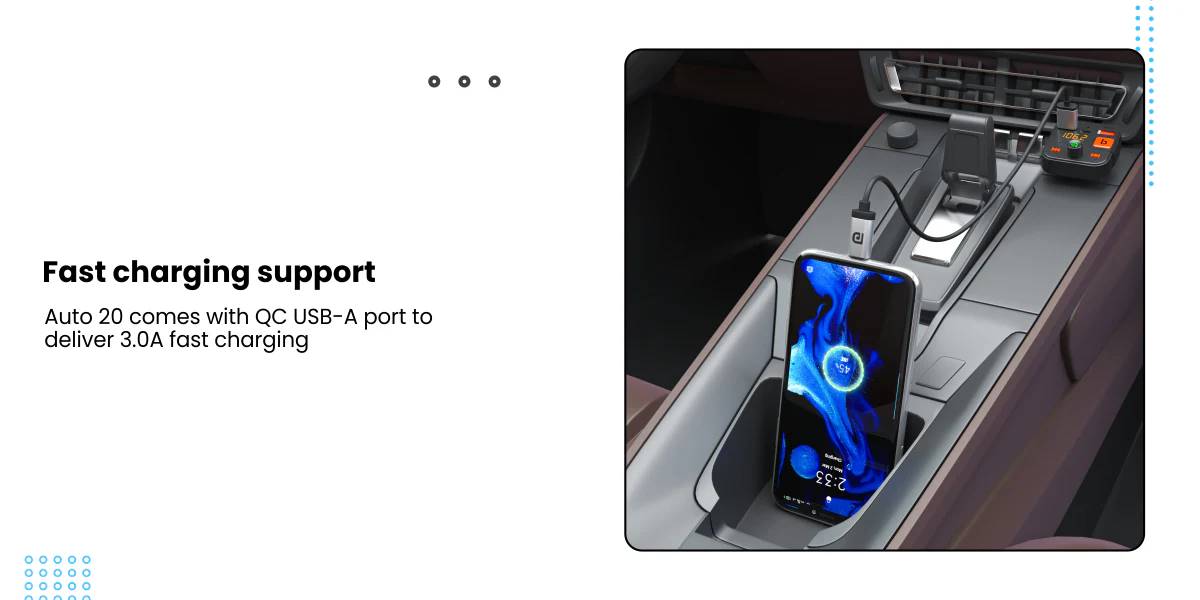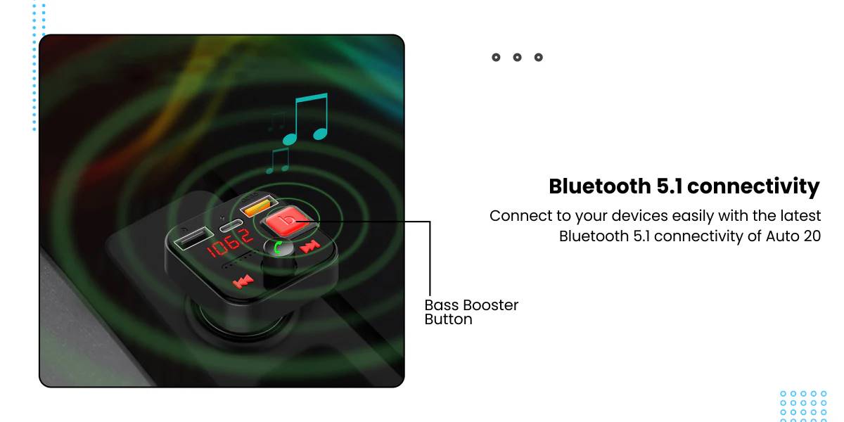 Don?? let the music stop Drive easy all the way – Portronics brings entertainment to you with the Auto 20, the all new smart car connector. Play music while you drive and stay entertained with your favourite songs on the go. Seamless connectivity – Easy connectivity is what everyone needs in today?? era. Equipped with the latest Bluetooth 5.1 connectivity feature, Auto 20 car music player is easy to patch through to, making your journey all the more enjoyable. Hands free calling for enhanced safety – Safety while driving is something that needs to be taken care of first. With the Hands free calling feature of Auto 20, answer calls easily and safely. Just press the green button to answer calls and drive safely while you talk. Power up your bass – Fan of heavy bass? Then we have just what you want for your car music. The Auto 20 comes equipped with a Bass button to adjust the bass of the music you listen to, delivering music exactly as you like it. Charge while you play – Charging phones is necessary for everyone, especially on long road. With Type-C 30W and QC 3.0 charging slots, Auto 20 lets you fast car charger charge your devices with maximum power output of 30W. Universal compatibility and minimalistic design – No more worrying about the compatibility issues of your car’s music device. Auto 20 comes with a universal compatibility, making it compatible with almost all cars. Minimalistic design – When you own a car, you’d definitely want the devices you equip it with to look classy and give a premium feel. The minimalist design of Auto 20 smart car connector is exactly what you’d want in a device you want to fit in your car. Warranty : 12 Months Warranty Importer/Manufacturer/Packer : Portronics Digital Private Limited, Ground Floor and First Floor, Property No. D 8 Upper Basement, Sector 8, Noida, Gautam Buddha Nagar, Uttar Pradesh, 201301