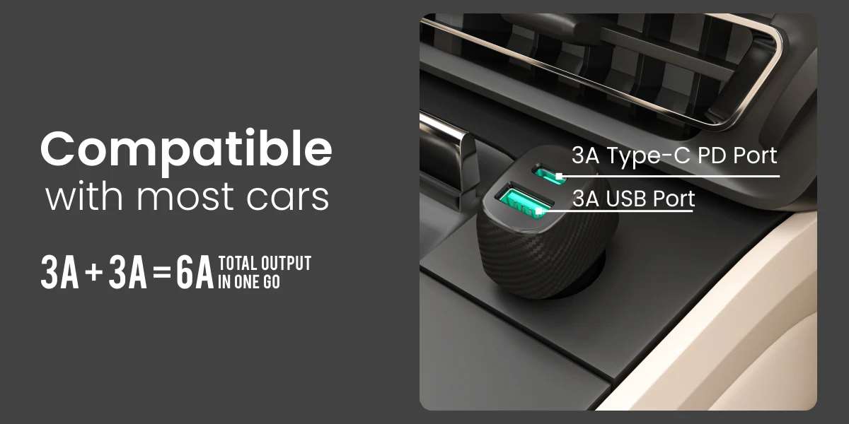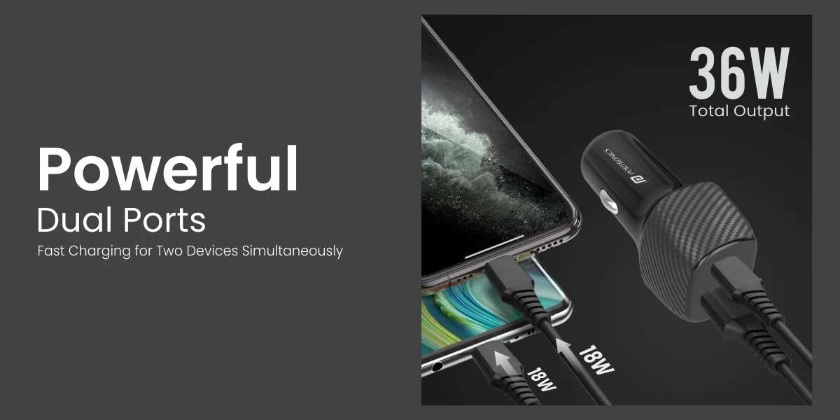 Portronics Car Power 6 36W Fast Car Charging Adapter with Dual Output Ports (PD Type C+ Mach USB-A) Compatible with iPhones, Android Smartphones, Tablets and More (Black)