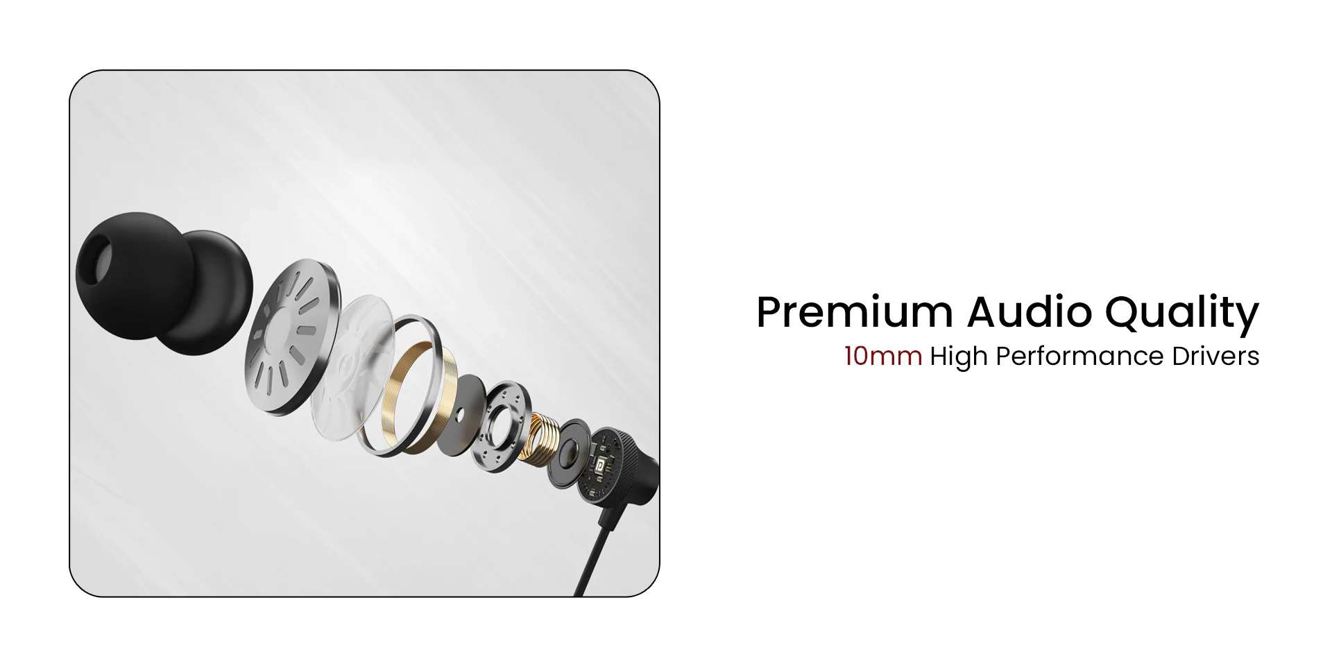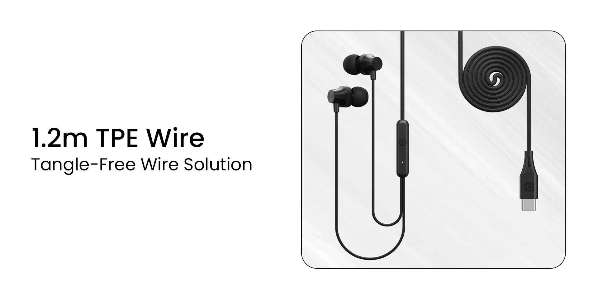 Features Premium Type C Earphones: Portronics Conch Beat C are Type C wired earphones designed to deliver a powerful audio output with its 10 mm drivers. Experience hi-fi stereo excellence while gaming, listening to music, or while taking calls. Widely Compatible: Connect effortlessly to your favorite devices with the convenient Type C audio jack, making it easy to use these wired headphones with various smartphones, tablets, laptops, and other Type C compatible devices. Metal Earbuds: These type c earphones feature metal alloy earbuds that provide better sound quality and are incredibly comfortable to wear all day long. No more discomfort, enjoy hours of uninterrupted listening pleasure. In-Line Controls & Microphone: The built-in mic allows you to take calls with clear sound quality without noise interference. Enjoy hands-free control with in-line controls to play/pause/skip tracks, take calls, and adjust volume. IPX5 Water Resistance: With an IPX5, the Portronics Conch Beat C earphones are protected against splashes of water, sweat, or light rain. Their resistance against moisture makes them perfect for intense workouts and other outdoor activities. 1.2m TPE Flexible Wire: Enjoy a convenient cable length of 1.2m made of soft and flexible TPE material. The Type C earphones are durable, lightweight, wear-resistant, and corrosion-resistant. Take them anywhere, anytime. Importer/Manufacturer/Packer: Portronics Digital Private Limited, Ground Floor and First Floor, Property No. D 8 Upper Basement, Sector 8, Noida, Gautam Buddha Nagar, Uttar Pradesh, 201301