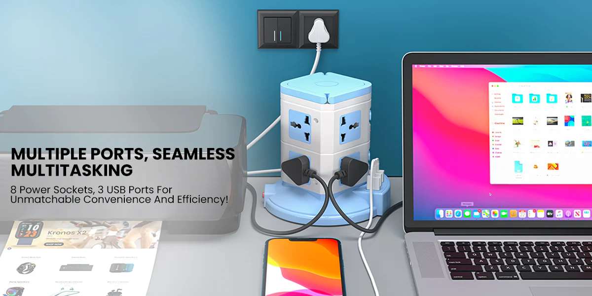 Power Plate 9 With 3 USB Port + 8 Power Sockets Power Converter