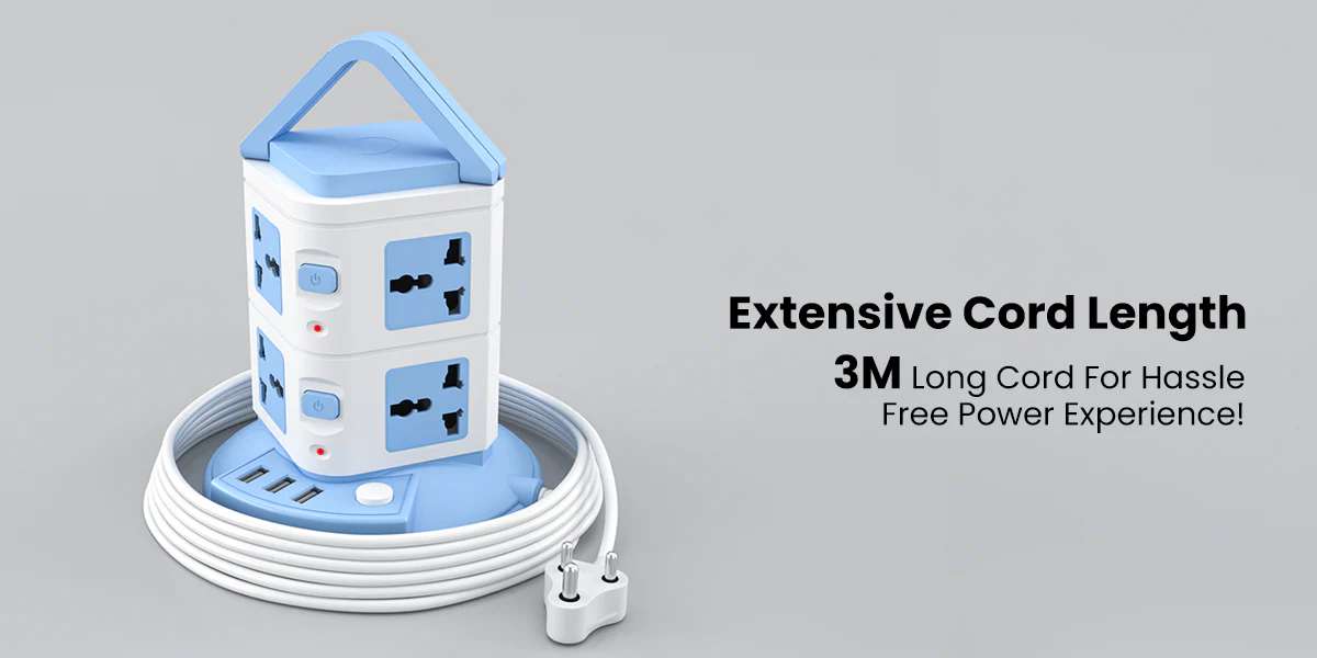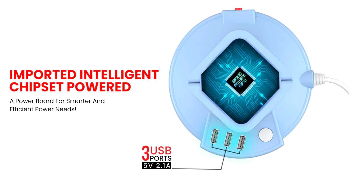 Portronics Power Plate 9 with 3 USB Ports + 8 Power Sockets Power Converter(POR-1600)
