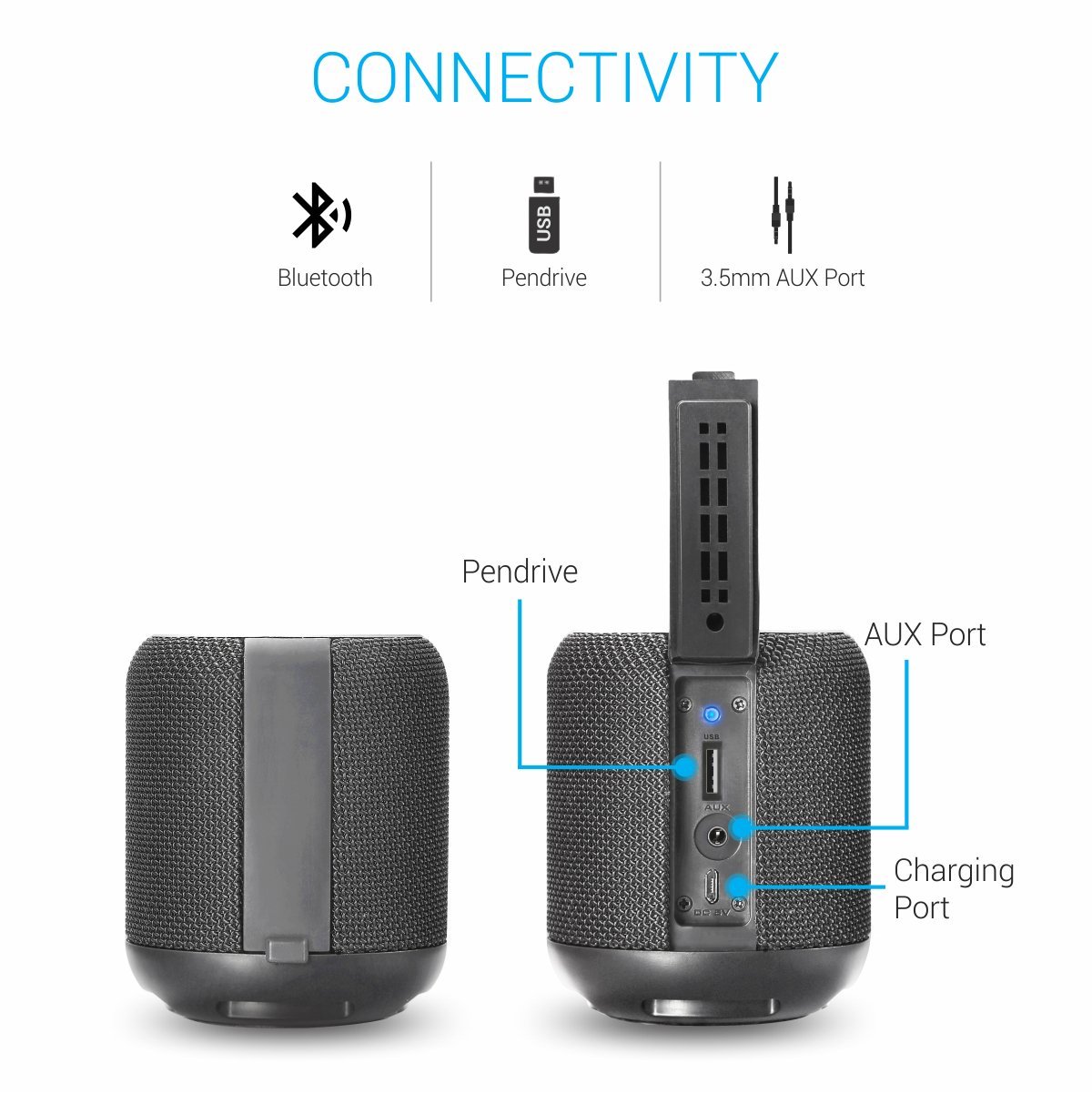 Portronics Sound Drum Portable Bluetooth Speaker with FM & USB Music, Black (POR-871)