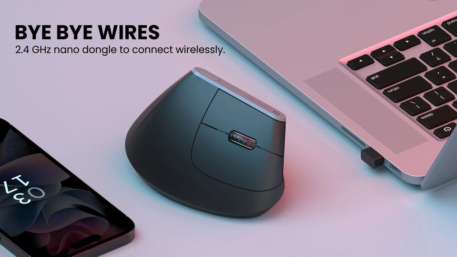 Portronics Toad Ergo Vertical Advanced Wireless Ergonomic Mouse 2.4Ghz, 6D Button/ Wrist Support/ Adjustable DPI Upto 1200/ Supports Hand Posture (Black)