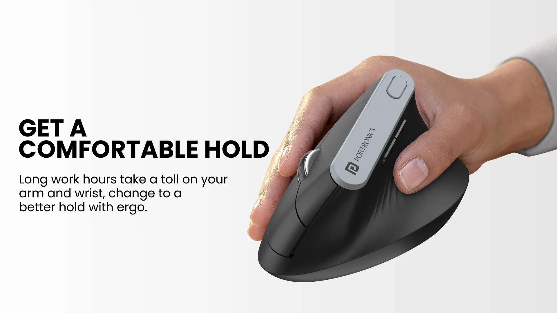 Designed for Ergonomics Happy Hands: The wireless mouse has been designed to reduce the strain off your palms and hands. The vertical or handshake grip gives support to your palms and wrists to keep them comfortable for those long days at work. 1200 DPI: The ergonomic mouse has a DPI of 1200 which is ideal for casual gaming, academic and professional work. College assignments or work projects complete it without compromising on comfort. 6D Buttons: The button design is a mix of traditional and modern sensibilities, the 3 buttons Left, right and scroll wheels that is super sensitive and register all clicks and scroll. The DPI button to adjust cursor speed and 2 buttons on the left to go forward/backwards while working on an application or while browsing. Effortless compatibility: The ergonomic mouse is compatible with Windows and mac powered devices. Windows: Windows 8.1/8/7/VISTA//XP MacOS: macOS 13 Ventura,macOS 12 Monterey, macOS 11 Big Sur,macOS 10.15 Catalina and macOS 10.14 Mojave Power Saving design: The ergonomic mouse is powered by 2 AAA batteries and has a power-saving design. As soon as the mouse is not in use, it hibernates to save battery. Warranty: 12 Months Importer/Manufacturer/Packer: Portronics Digital Private Limited, Ground Floor and First Floor, Property No. D 8 Upper Basement, Sector 8, Noida, Gautam Buddha Nagar, Uttar Pradesh, 201301.
