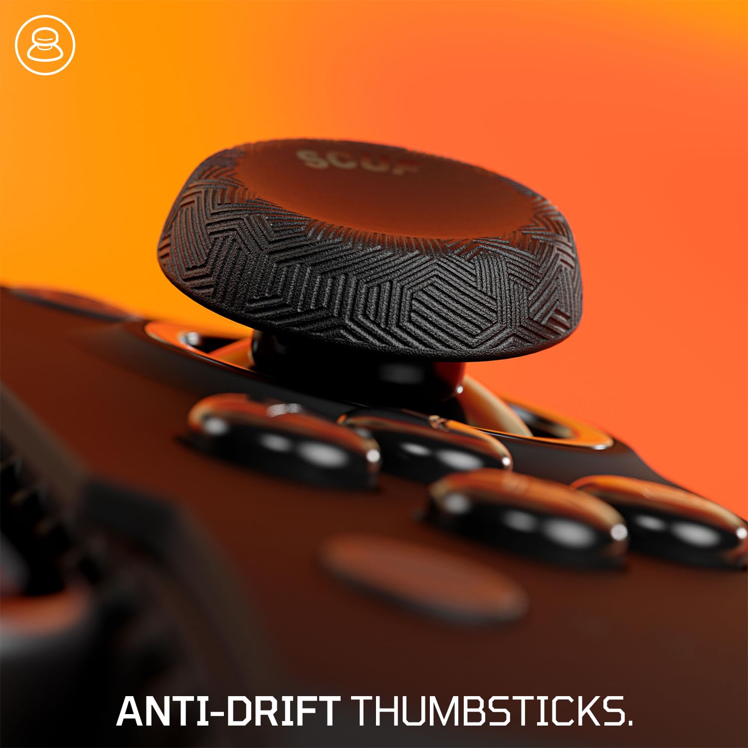 A BETTER WAY TO PLAY?ANYWHERE. Inspired by our groundbreaking performance controllers, Nomad brings your favorite features to a fully mobile experience. CUSTOMIZABLE REAR PADDLES. Keep your thumbs on the sticks and play with faster reactions thanks to these two ergonomically placed rear paddles. Assign practically any function to these paddles to suit your in-game preference. SUPERIOR ERGONOMICS. Nomad is designed to fit naturally in your hands due to its traditional controller shape and size. Utilizing our proven ergonomics, Nomad has a full-size grip so you can play longer and better. ANTI-DRIFT THUMBSTICKS. Our anti-drift Hall effect thumbsticks are less likely to get stick drift and are built to last. They are full sized and provide enhanced grip, comfort, and the option to customize. UP TO 16 HOURS OF BATTERY LIFE. Play your favorite controller supported games for up to 16 hours without worrying about draining your phone?s battery. A USB-C cable is included for charging to get you back in the game in 20 minutes. THOUSANDS OF GAMES IN YOUR HANDS. The free SCUF app allows you to play your favorite controller supported games on the go. CUSTOMIZE YOUR GAMEPLAY. Change your paddle inputs, fine-tune the thumbstick?s sensitivity, adjust your triggers, and more in our subscription free app. Save profiles in the app for ease when switching between games. RECORD AND SHARE. Effortlessly showcase your plays with a single button. Use the SCUF Button to capture screenshots and record your gameplay, streamlining the process of highlighting your impressive plays with ease. COMPATIBLE WITH MANY CASES. Don?t worry about taking off your case to get in the game, Nomad is designed to accommodate many phone cases without compromising functionality or style. |