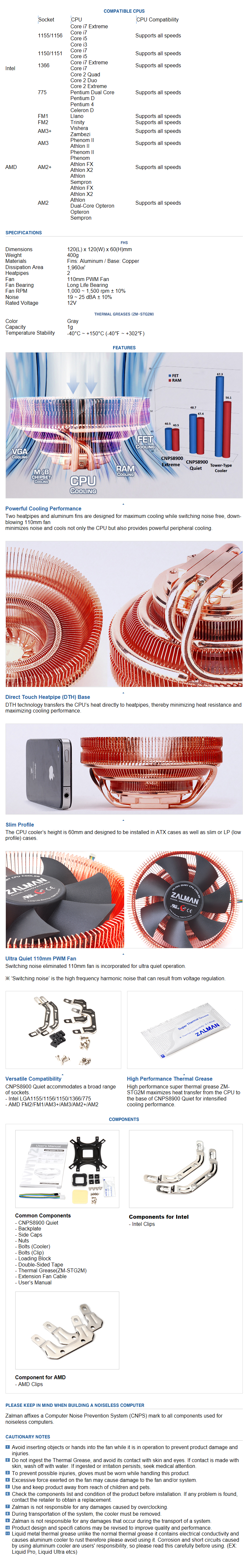 ZALMAN CNPS8900 Quiet Cooling Fan/Heatsink – Ultra Quiet Slim CPU Cooler for Intel 12th/ 13th Gen & AMD AM4/ AM3 Processors