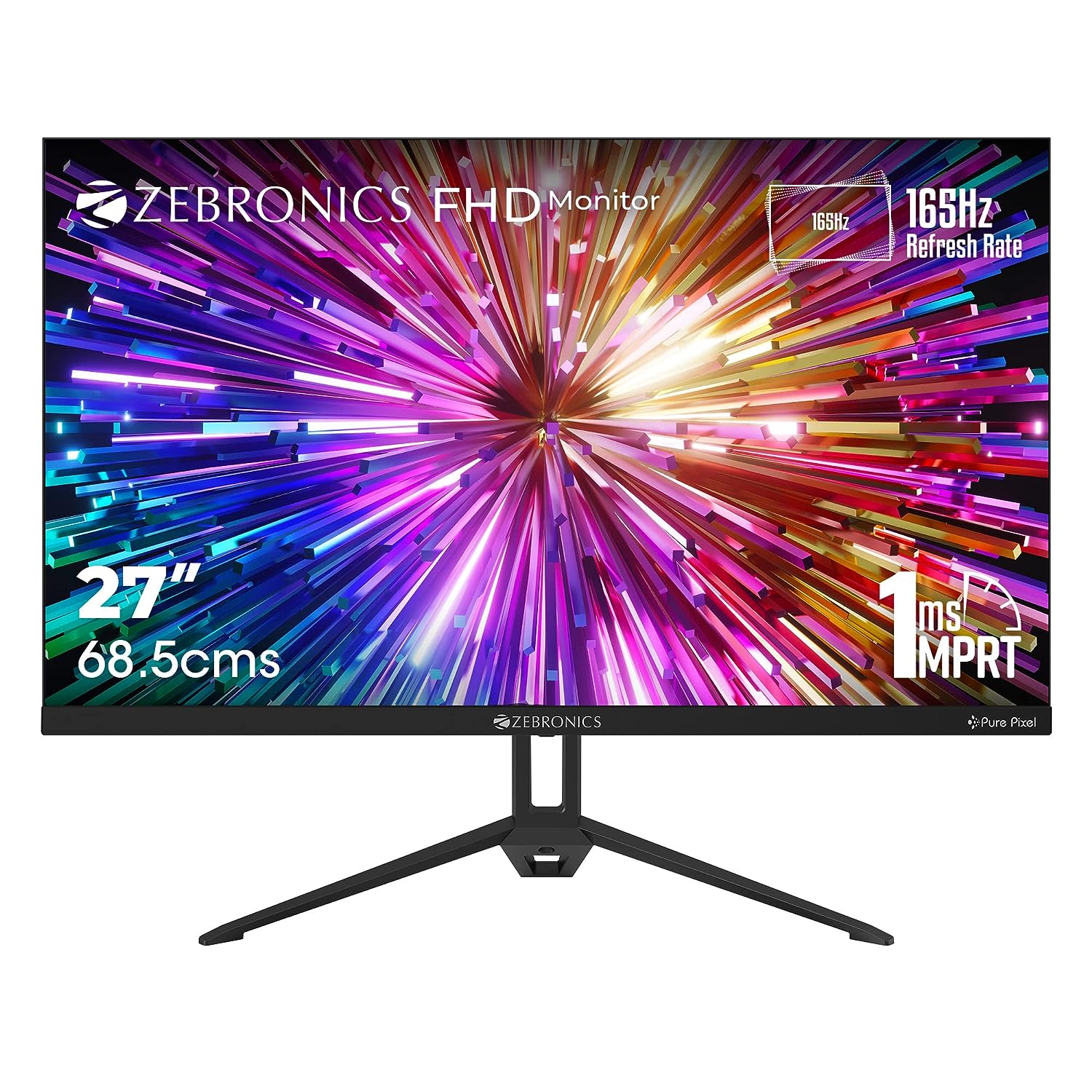ZEB-S27A 165Hz 27 inch Gaming Monitor – FHD 1920x1080p, IPS Panel, 1ms MPRT, HDR10, Free sync Support, DP, 2 x HDMI, 300 Nits max, 16.7M colors, Built-in speakers and Bezel less design