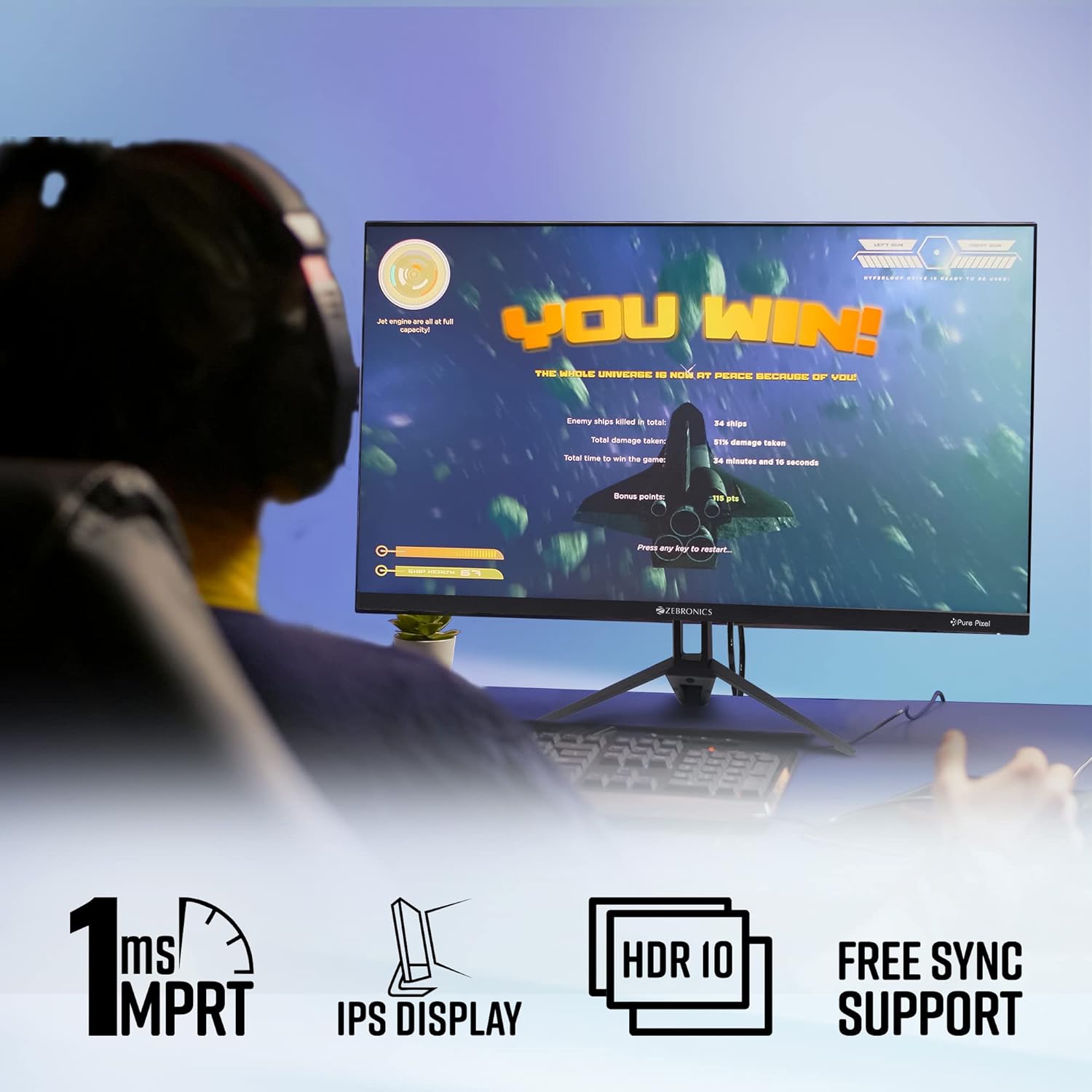 Upgrade to large screen gaming with ZEB-S27A LED monitor.This IPS monitor is perfect for gaming with fast response time and can produce stunning visuals. Perfect blend of productivity and entertainment features.