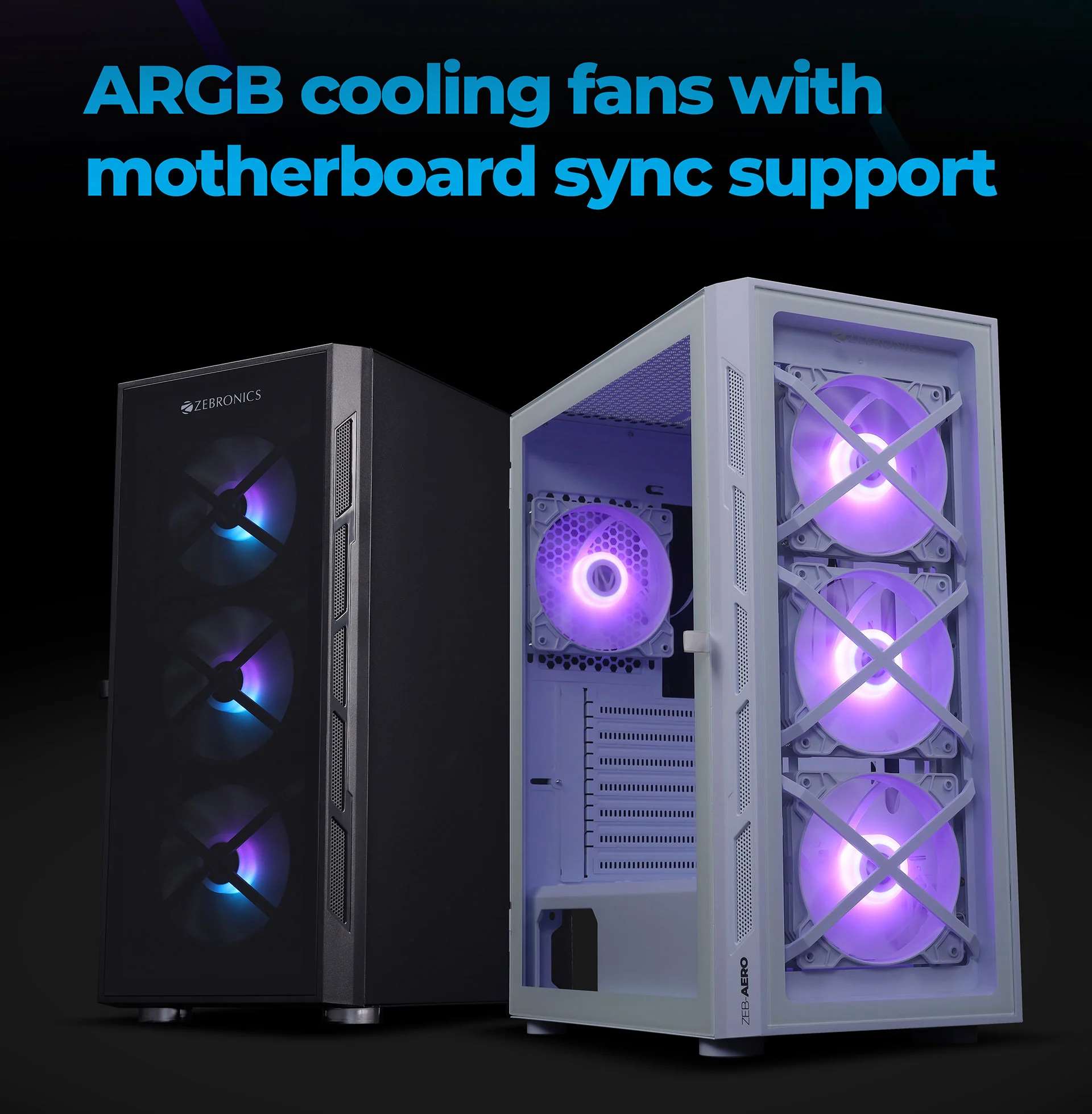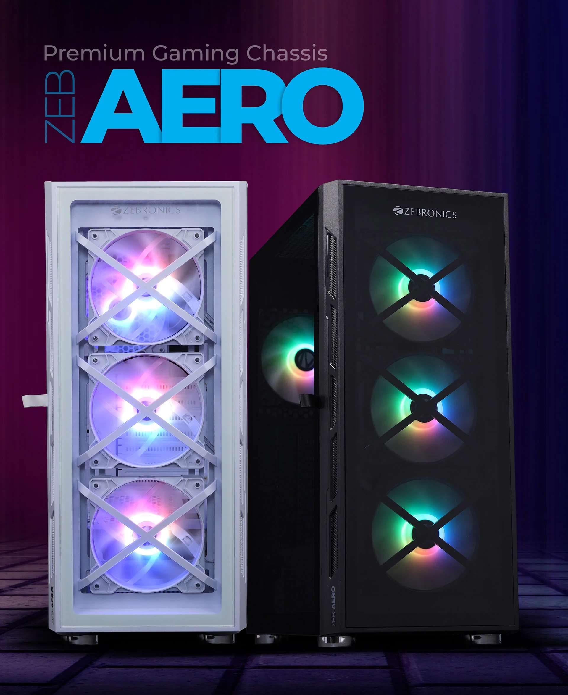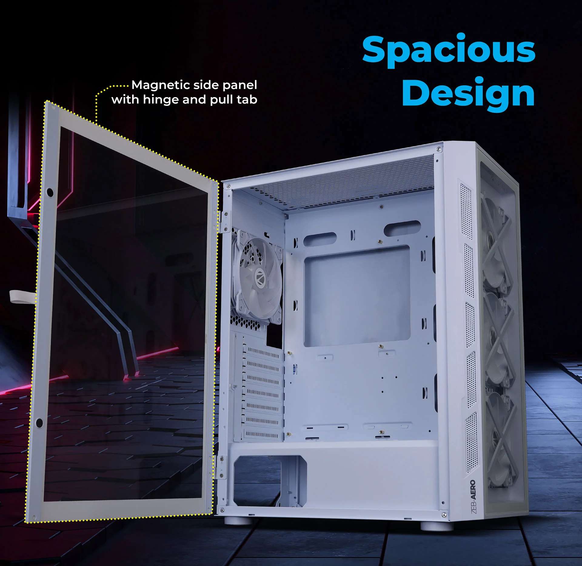 Zebronics AERO Gaming Cabinet with 3 x 120mm Front ARGB LED Fans, Rear hinged side Glass panel and 4 x120mm ARGB LED Fans, Front and Side Tempered glass (White)