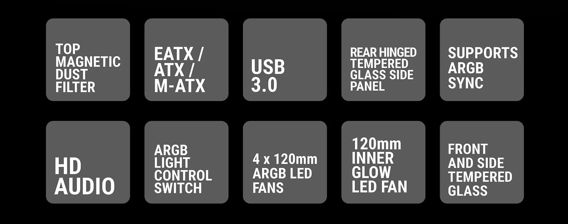 | Side panels | Tempered Glass & Magnetic Door |