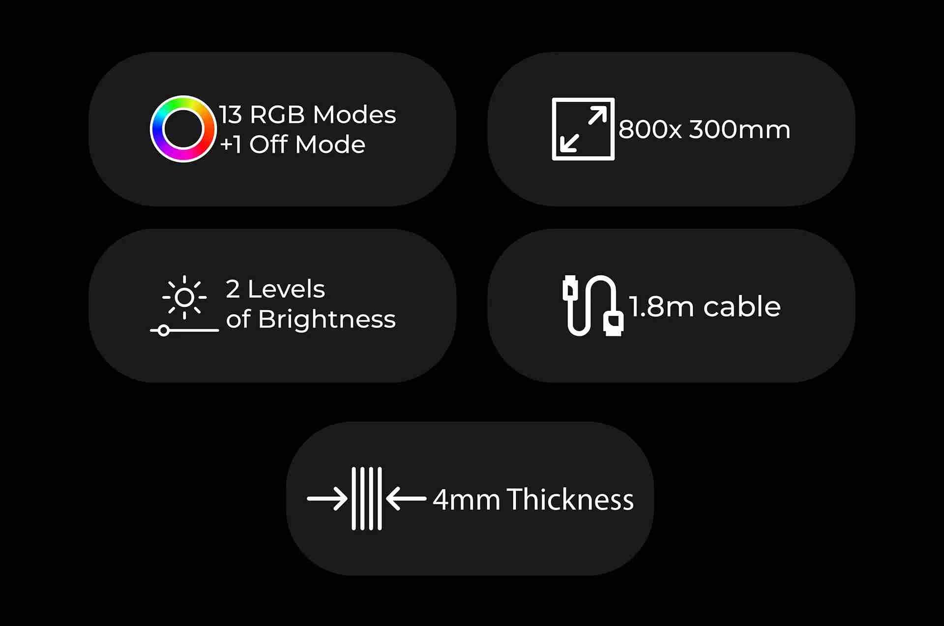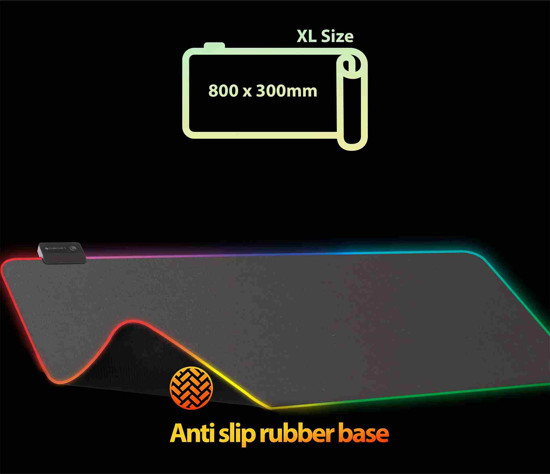 Zebronics Blaze XL RGB Gaming Mouse Pad with Micro Weave Texture/ 13 RGB Modes/ Anti Slip Rubber Base/ 800x300mm (Black)