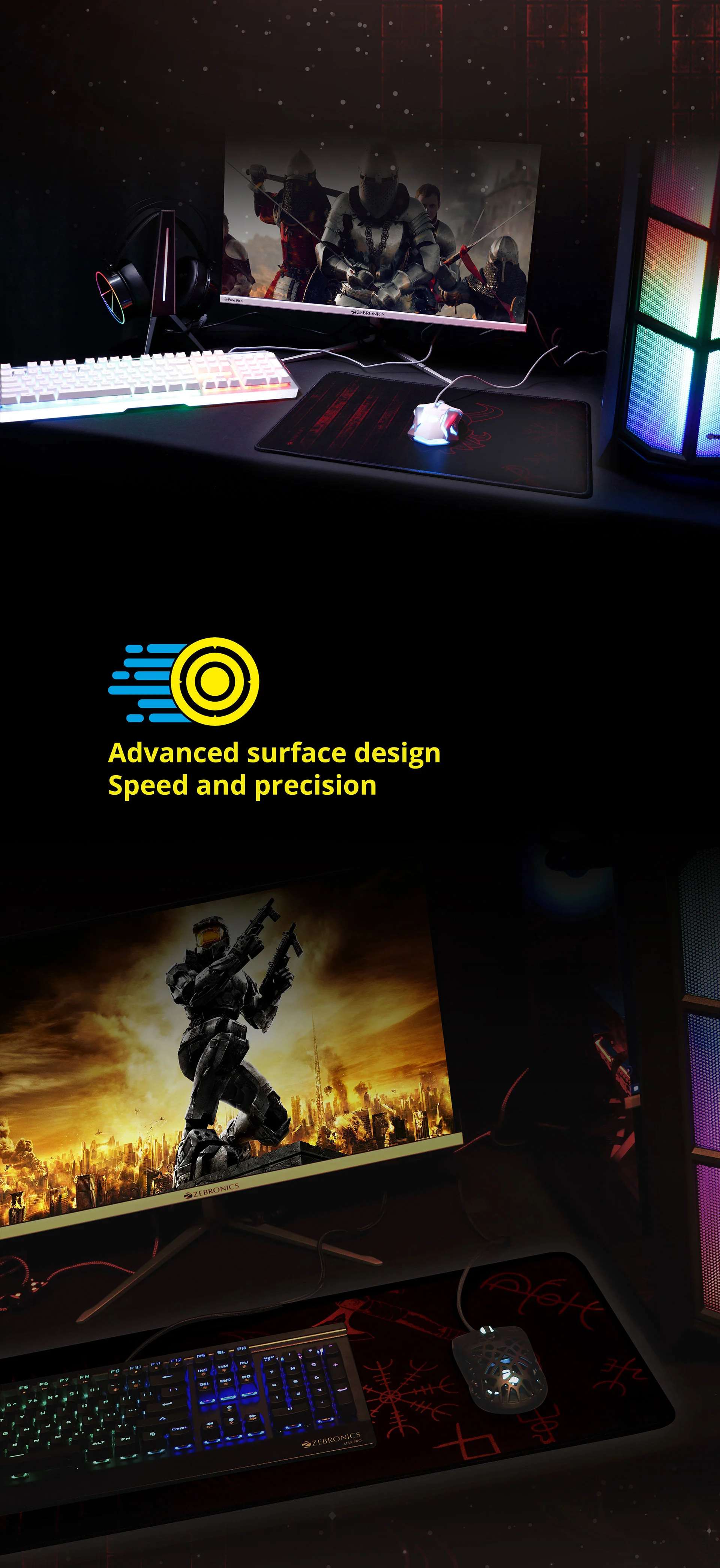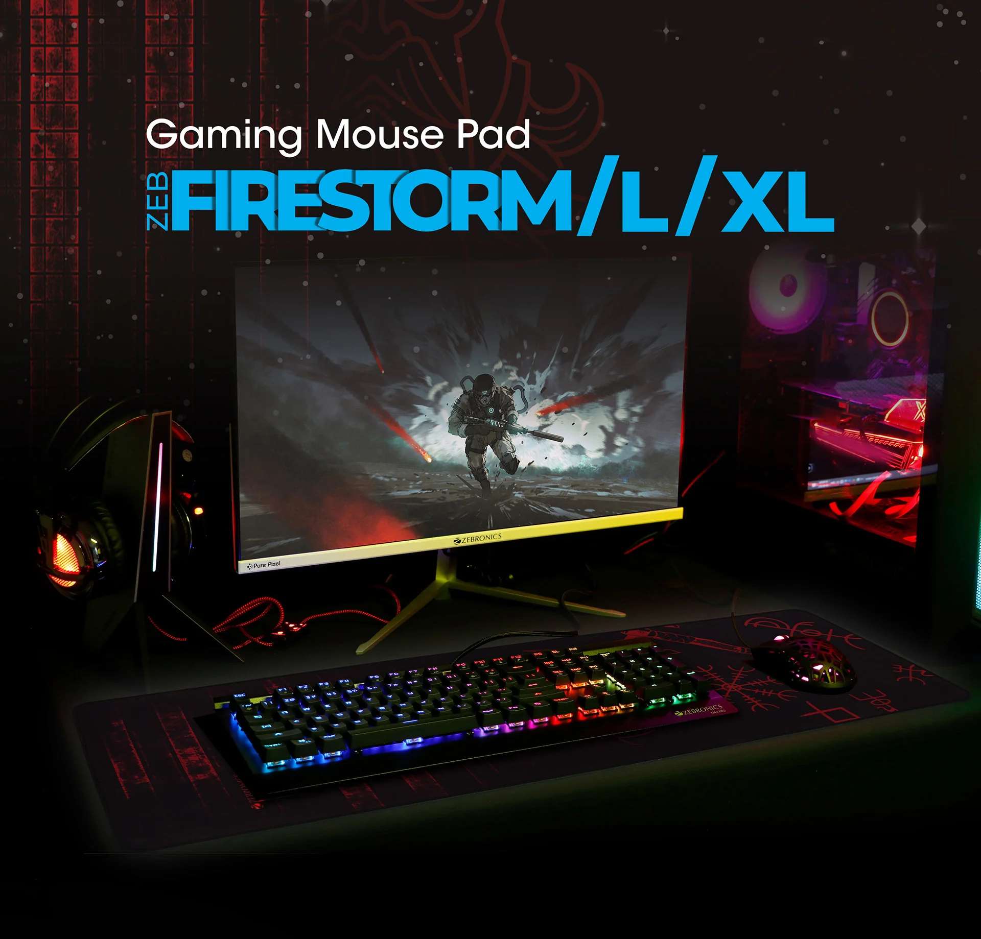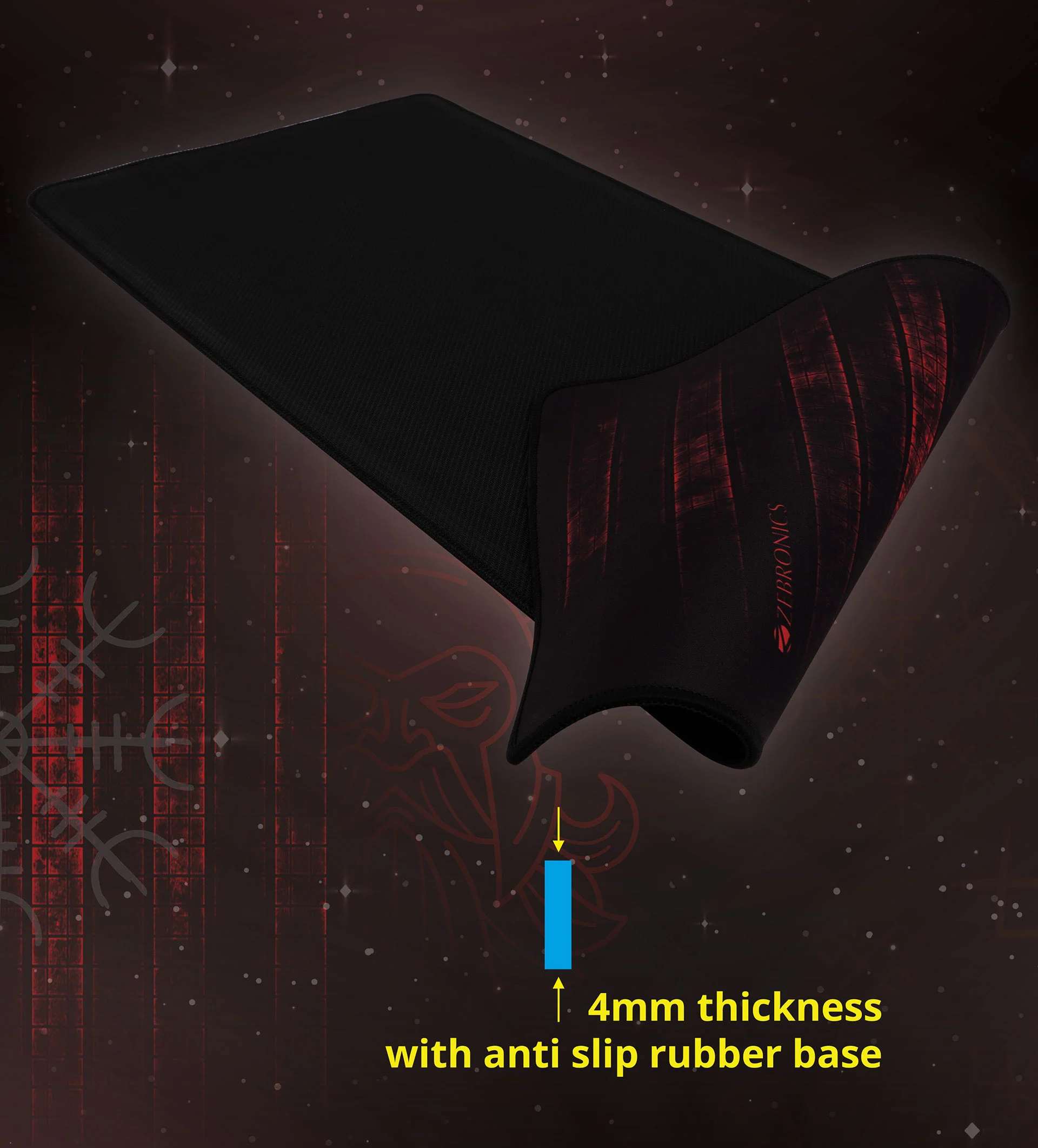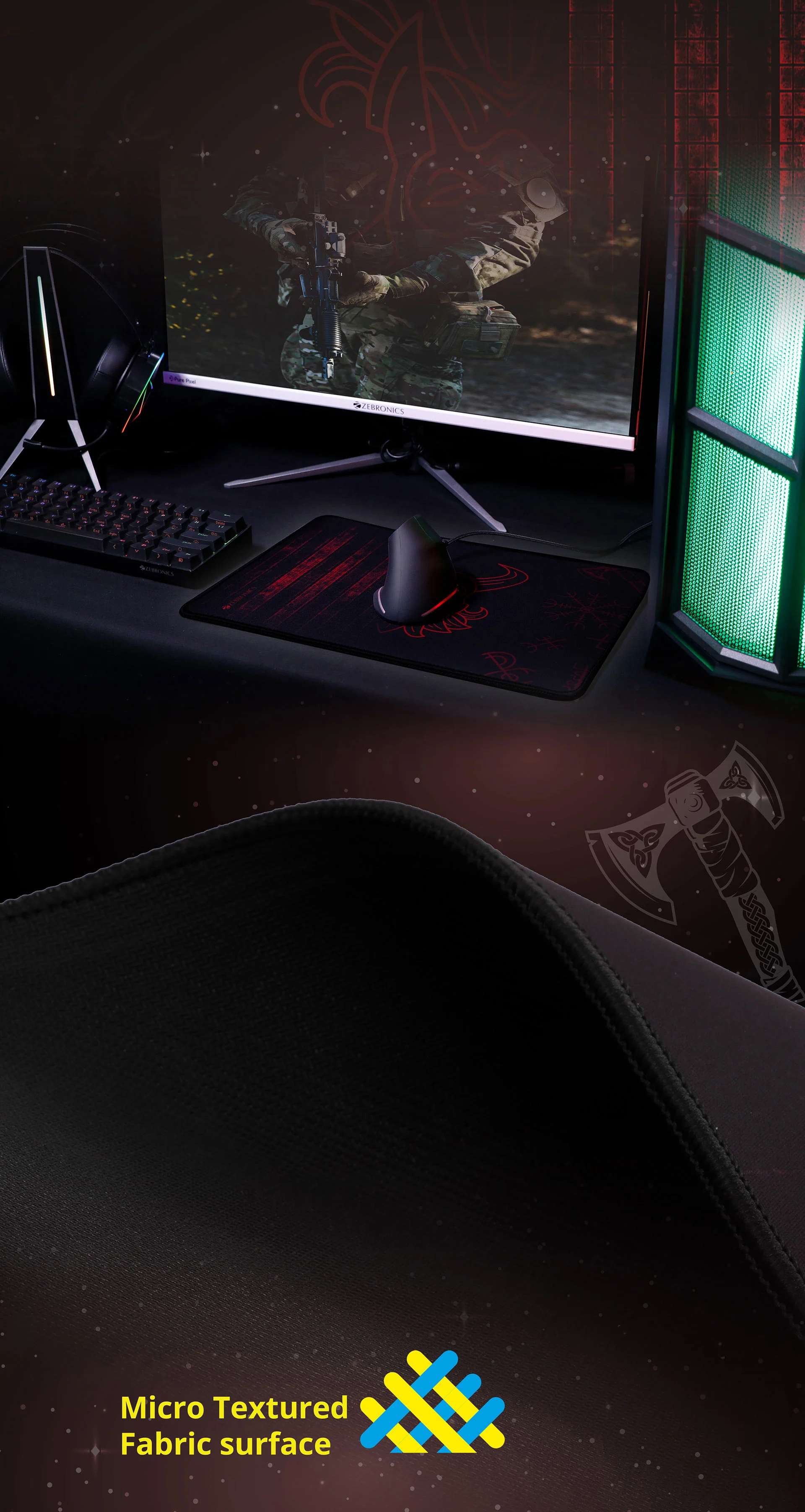 Zebronics Firestorm gaming mouse pad XL for all mouse sensors with micro-textured fabric surface/ anti slip rubber base/ 440x350mm size/ 4mm thickness and a Portable roll and go design