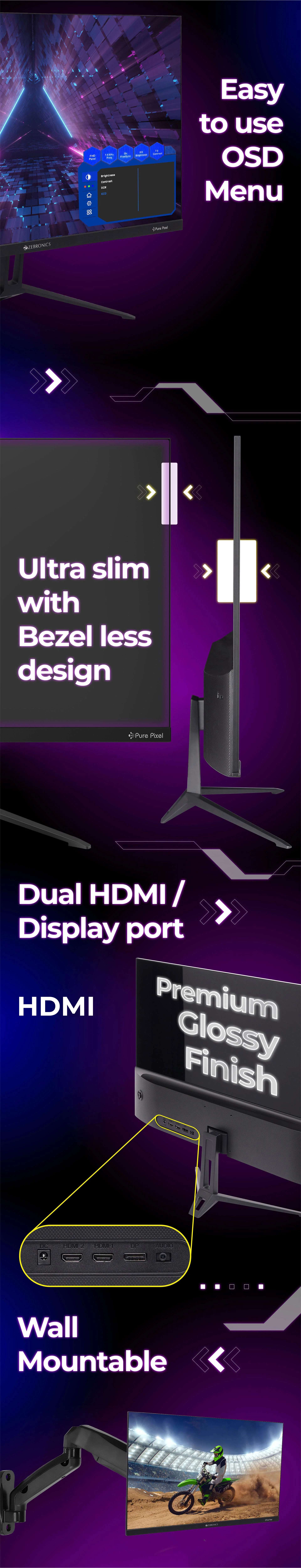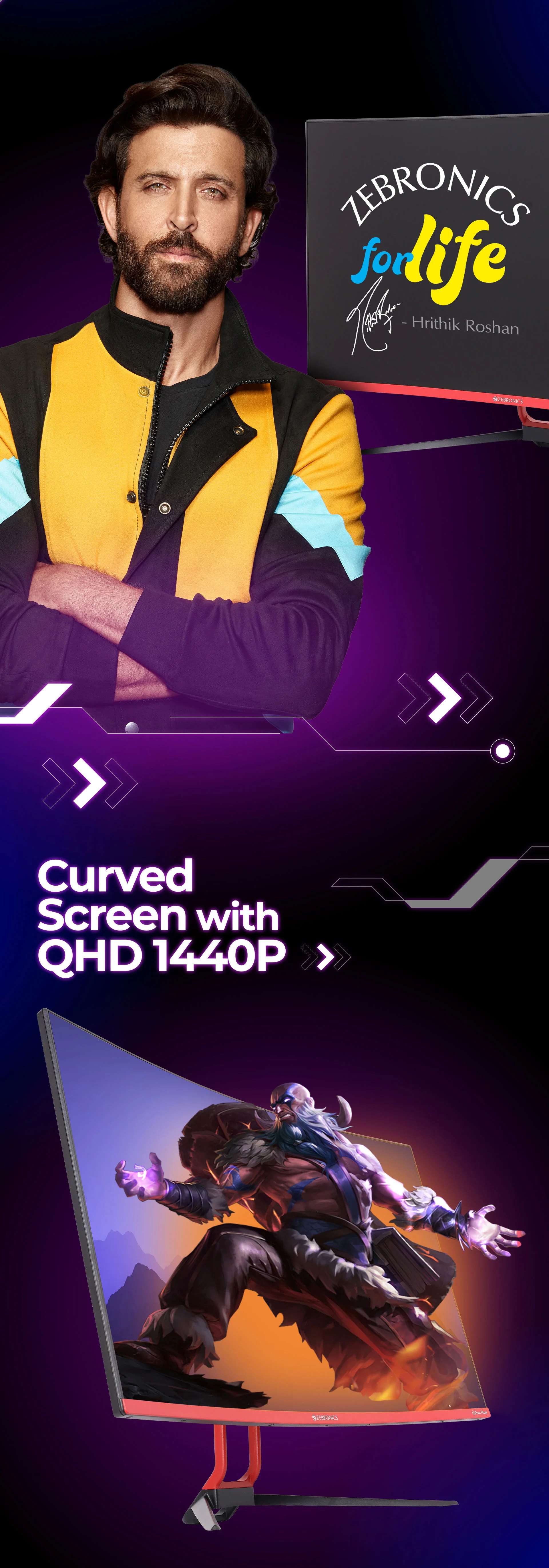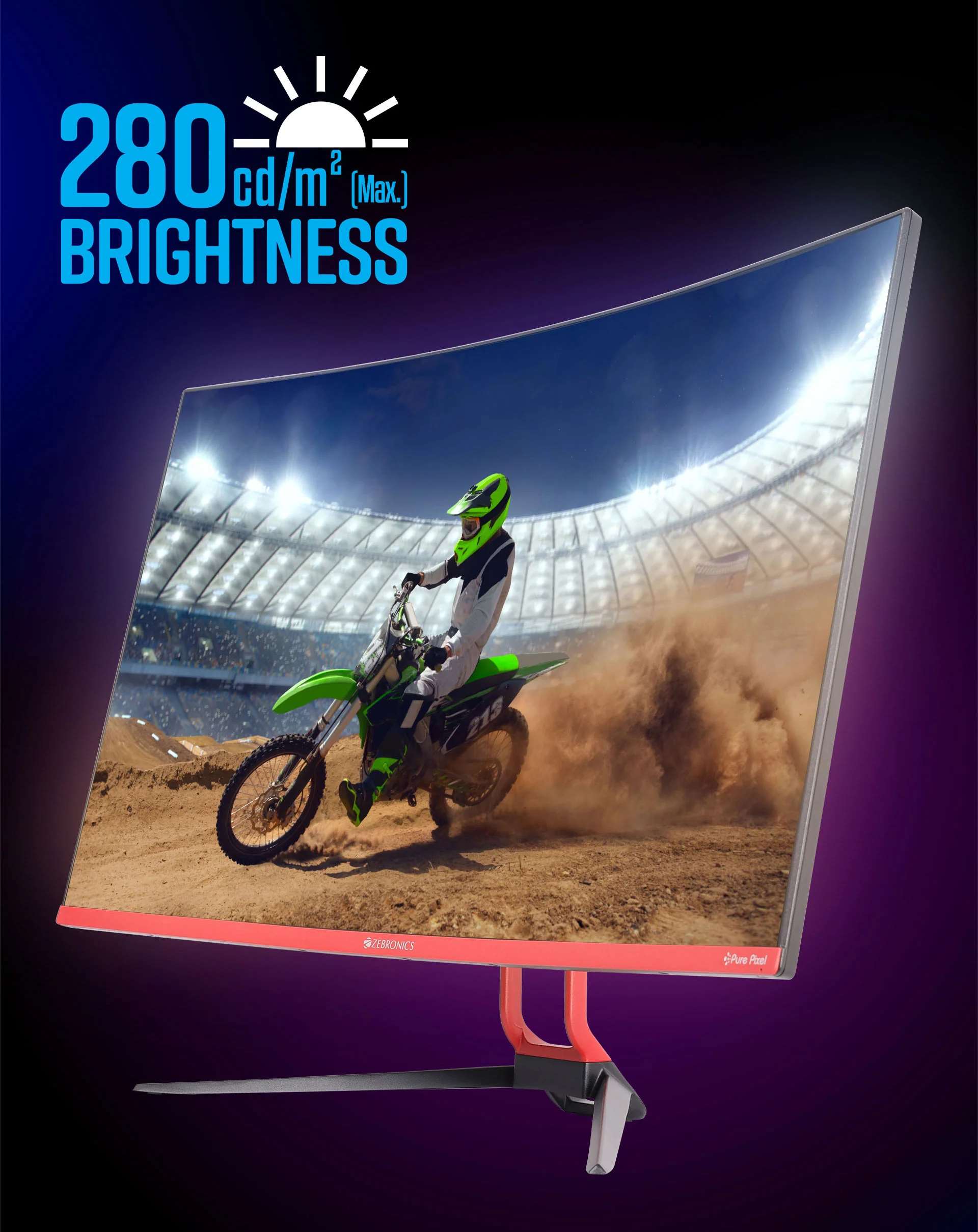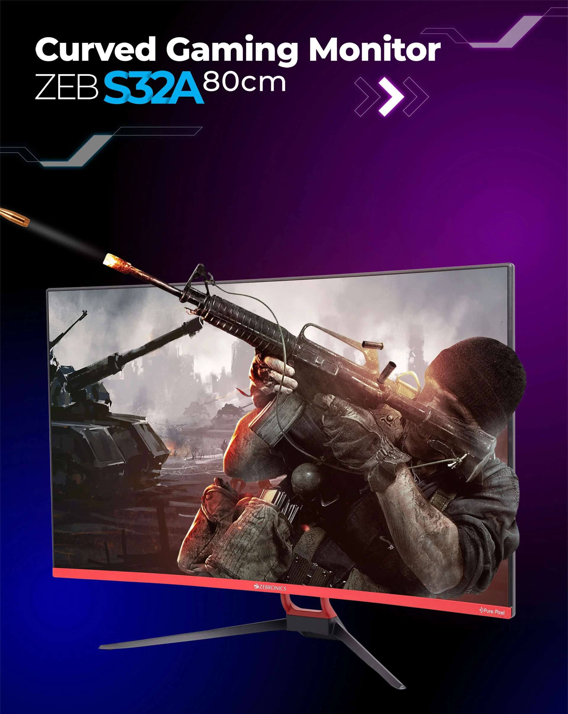 Zebronics S32A, 1800R Curved Gaming Monitor, 32 inch (80cm), 280 nits, 180Hz, WQHD, 2560×1440, FreeSync, 1ms MPRT, HDMI, DP, HDR10, Bezel Less, Built-in Speakers, Wall Mountable