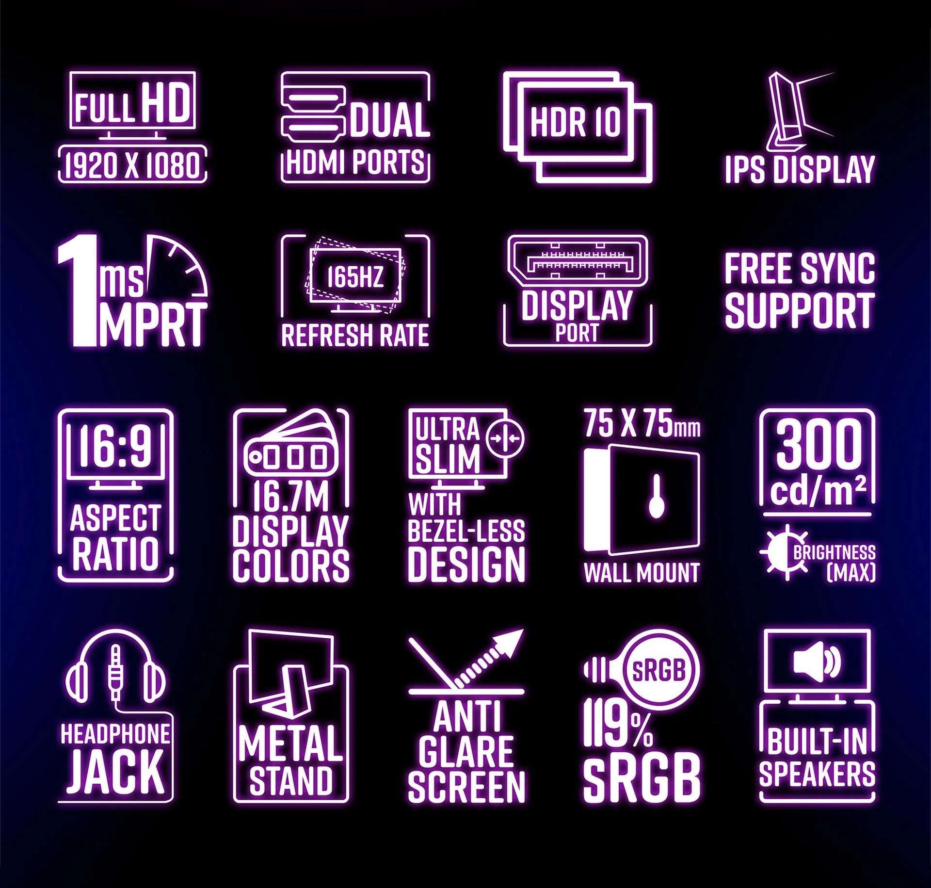 | Package contents | Monitor – 1 Unit Base – 1 Unit Stem – 1 Unit HDMI Cable – 1 Unit Power Cord – 1 Unit Power Adapter – 1 Unit User Manual – 1 Unit |