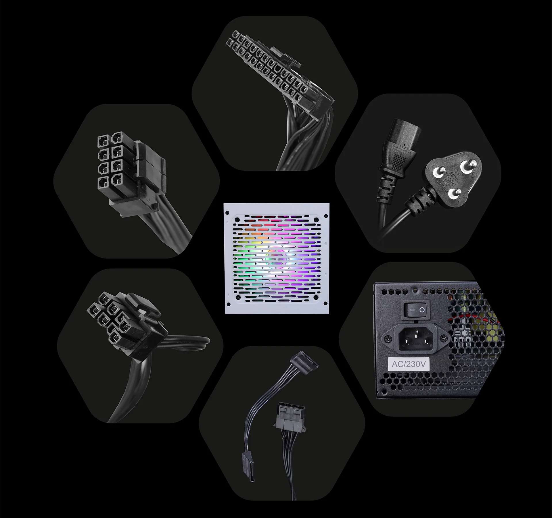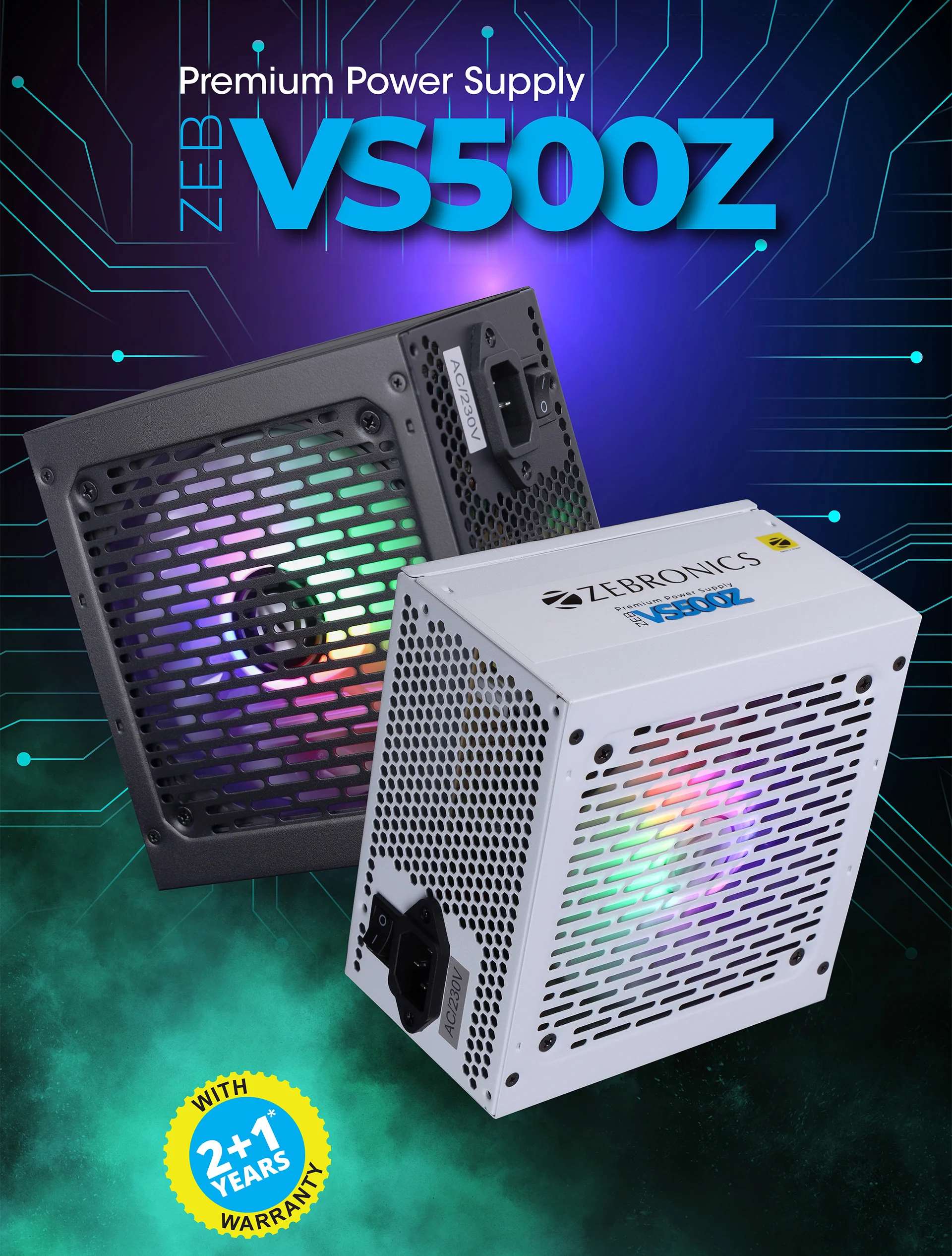 Zebronics VS500Z 500W Non Modular Premium Power Supply with Silent 120mm RGB Fan, Long Flat Cables, PCIe x 1, SATA x 4, 12V 32A (Max.), Over Voltage/Short Circuit Protection (Black)