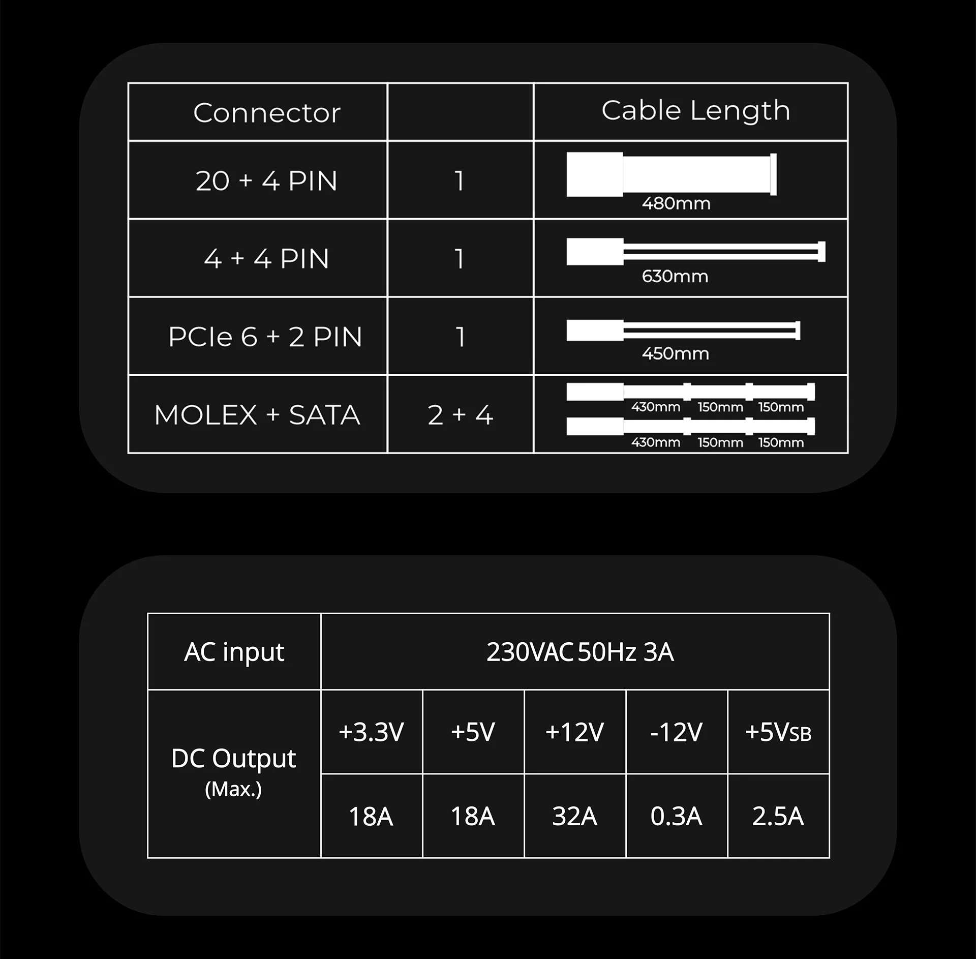 | Power good signal | 100 ~ 500ms |