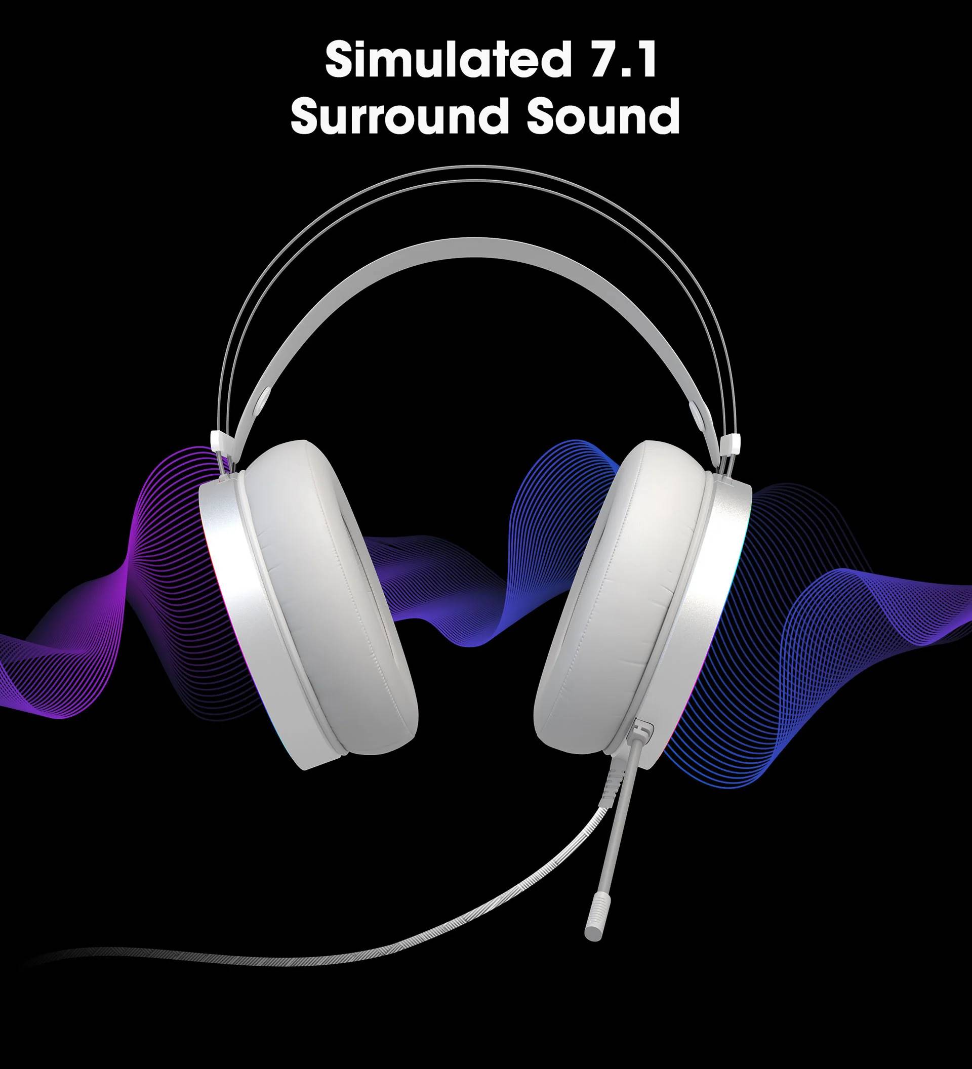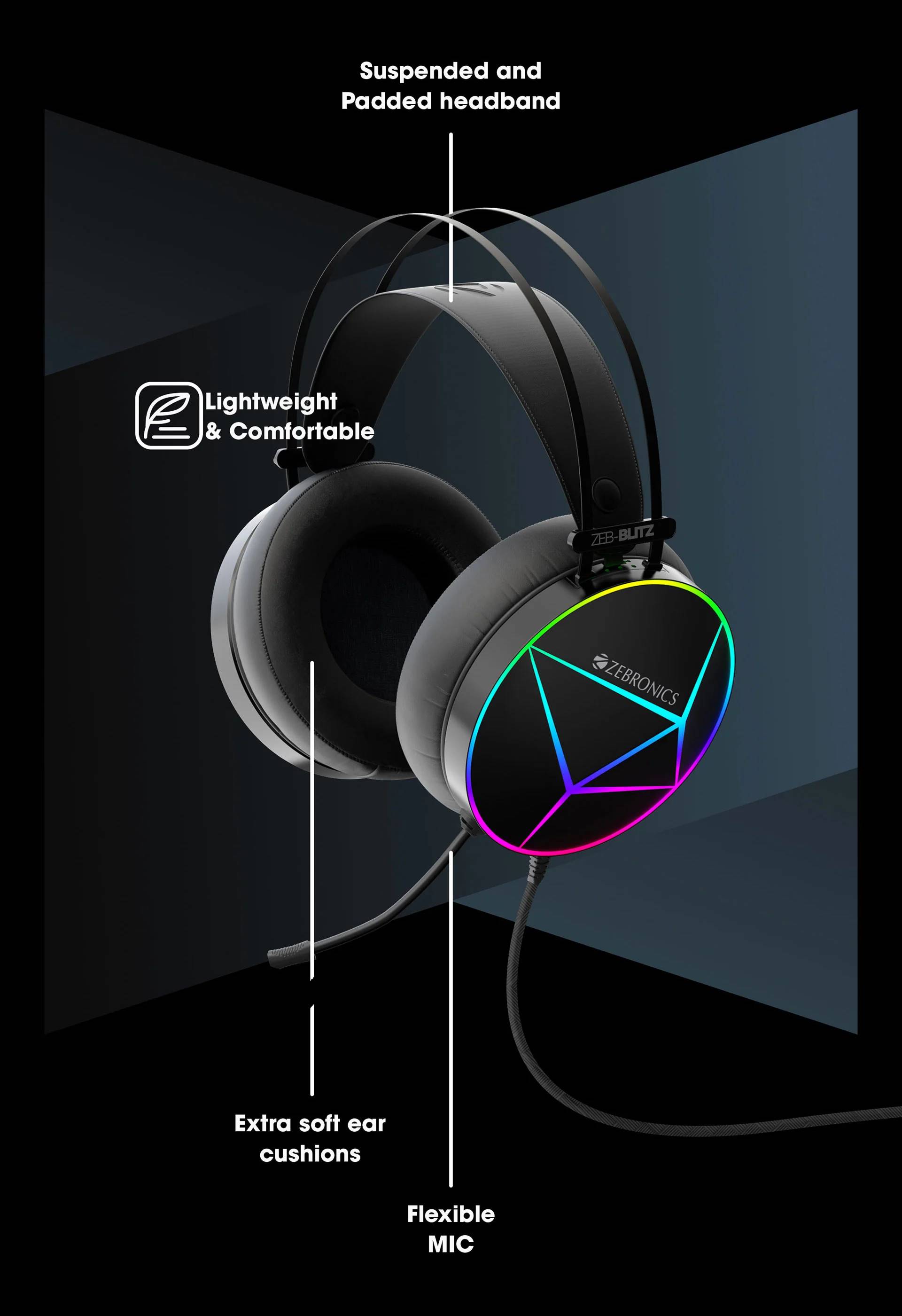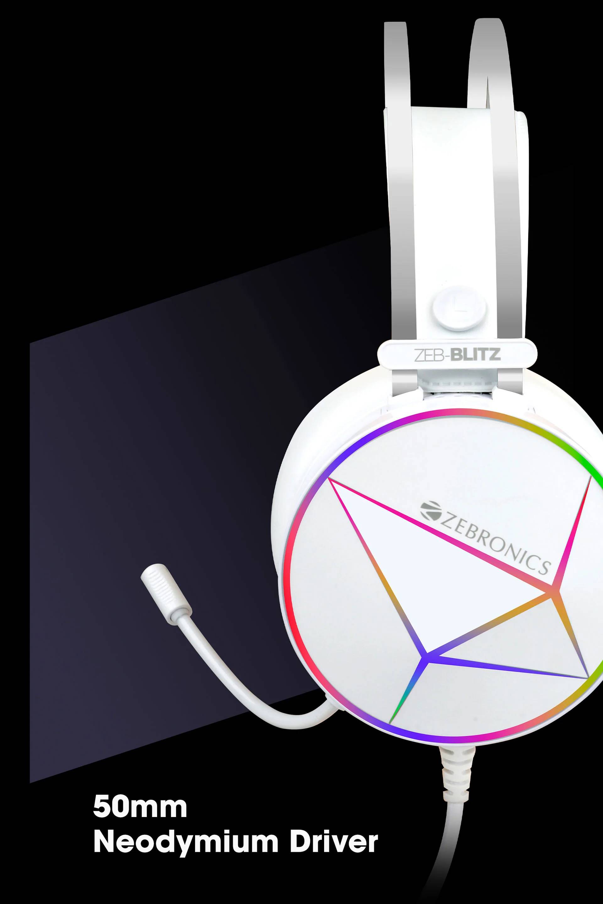 ZEBRONICS Zeb-Blitz USB Gaming Wired On Ear Headphones with Mic with Dolby Atmos/ RGB Led/ Windows Software/ Simulated 7.1 Surround Sound/ 2.4 Meter Braided Cable Flexible Padded Ear Cushions (White)