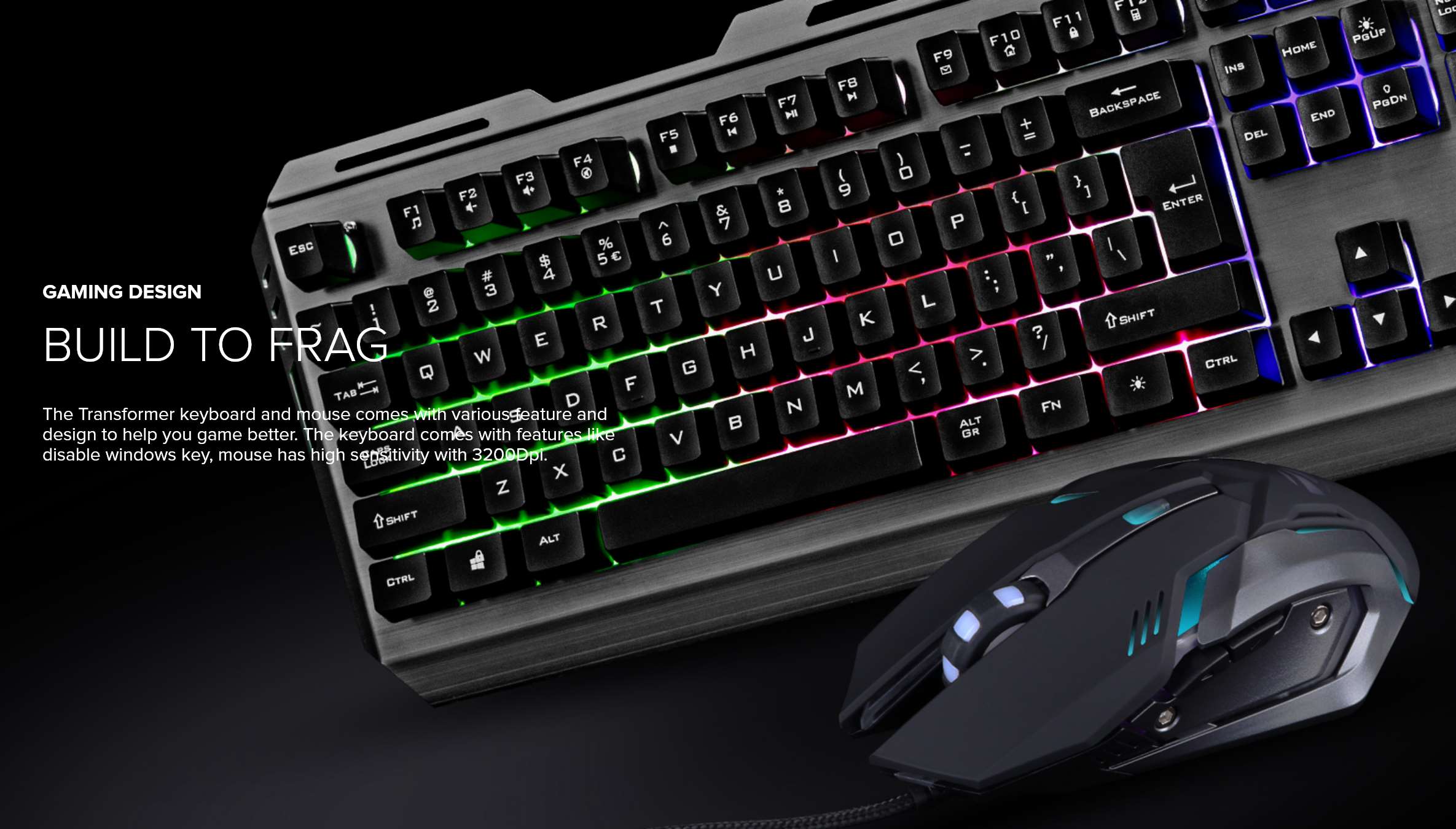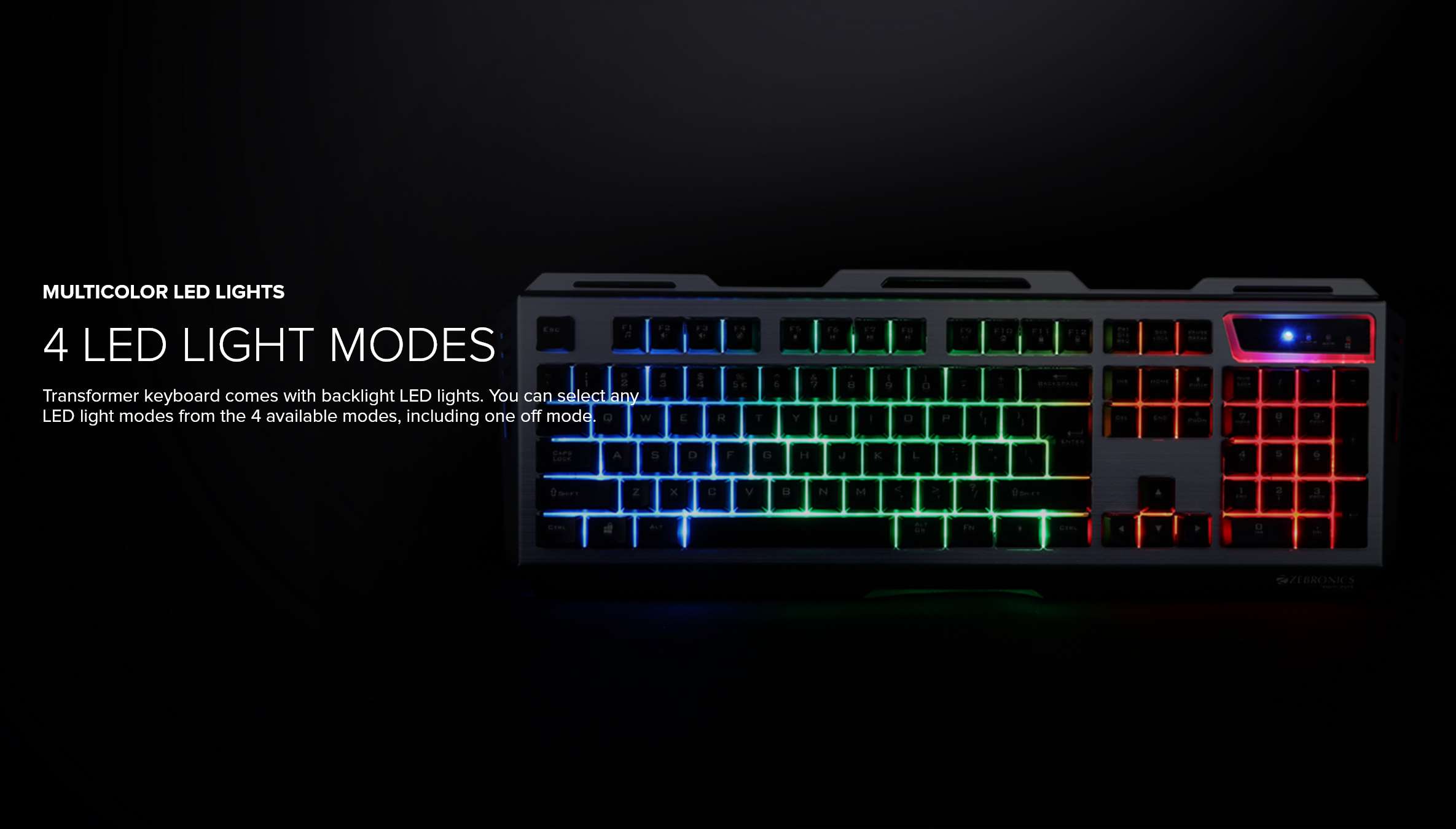 Zebronics Zeb-Transformer USB Gaming Keyboard and Mouse Set (USB, Braided Cable) White with Silver