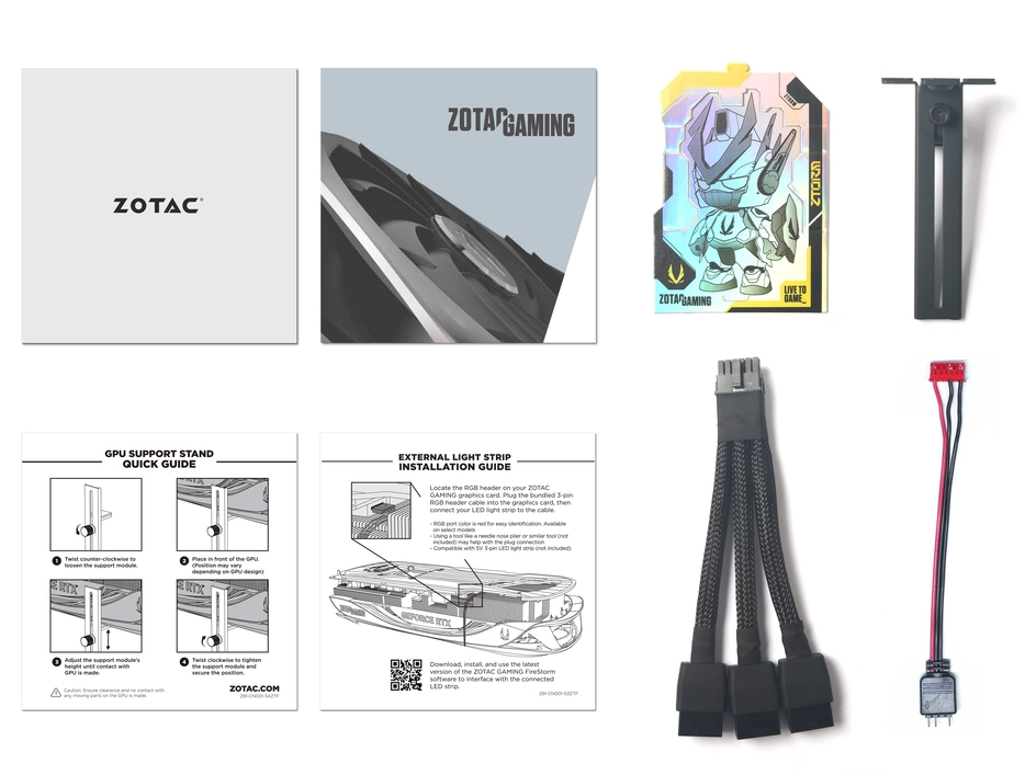 | Accessories | GPU Support Stand 3-pin RGB Header Cable 3x 8-pin-to-12VHPWR cable Manual |